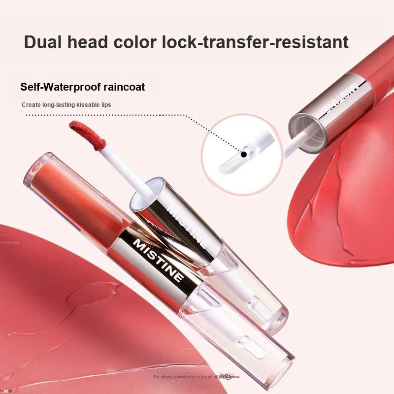 Двойная головка Жидкая помада D01+D06+Темное дерево Сладкий чай