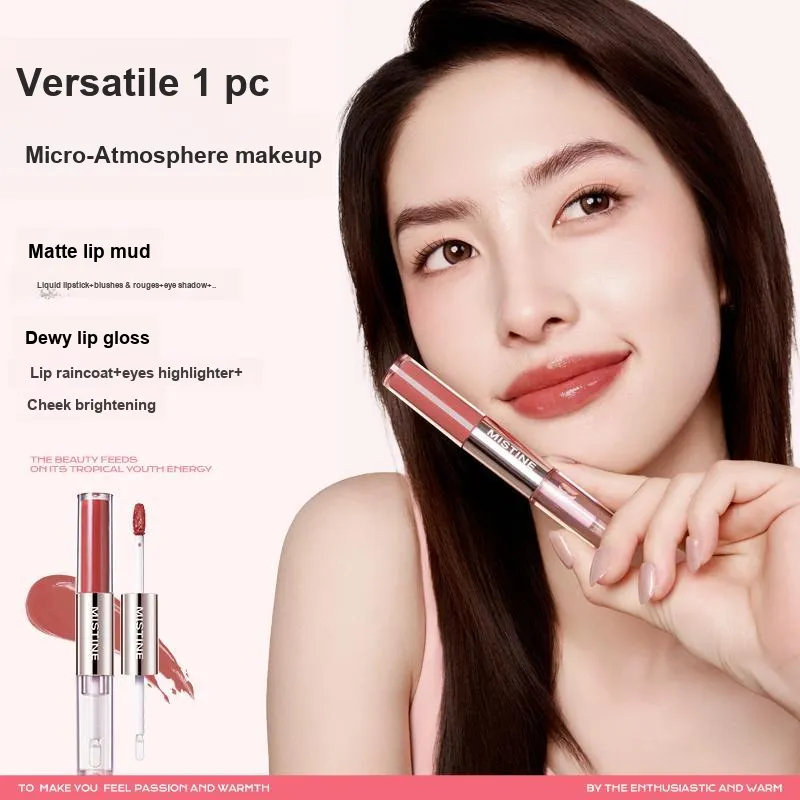 Двойная головка Жидкая помада D01+D05+Темное дерево Сладкий чай