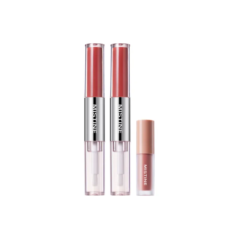 Двойная головка Жидкая помада D01+D03+Темное дерево Сладкий чай