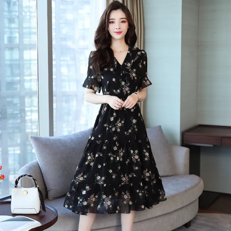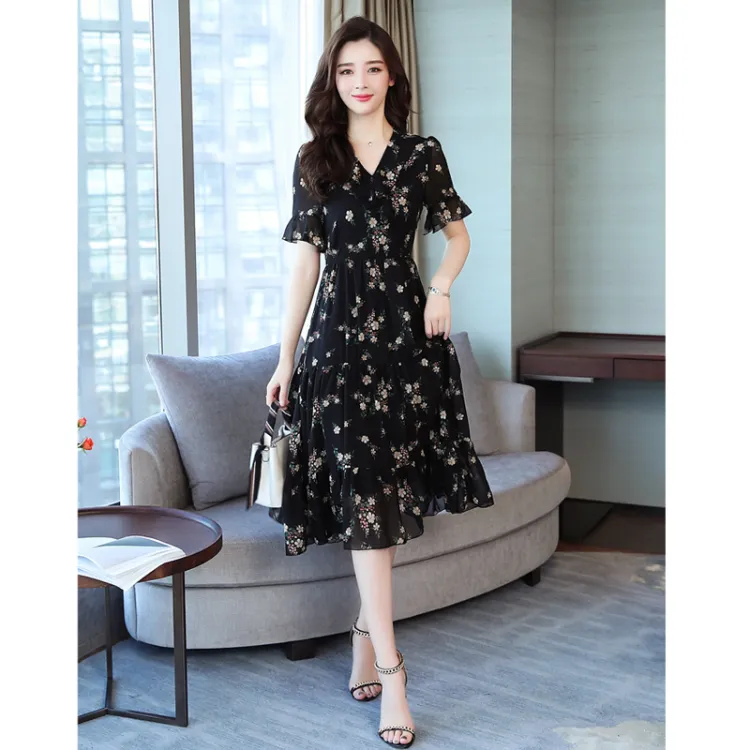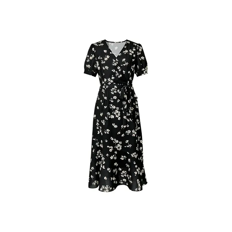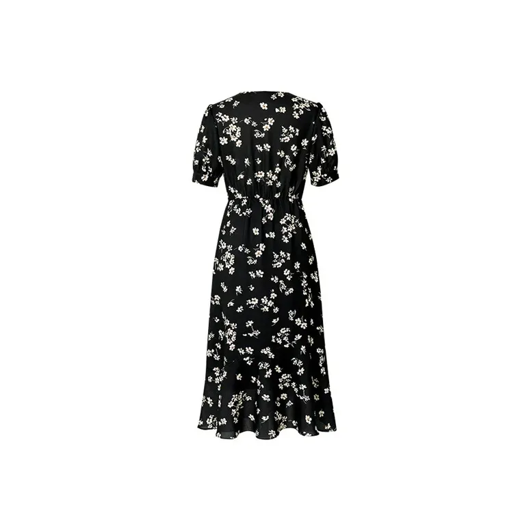 MISTVB Короткий рукав Платье Женское Черное