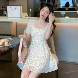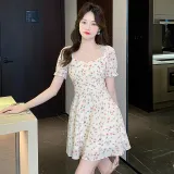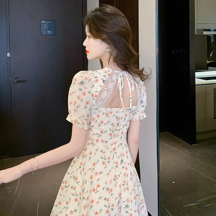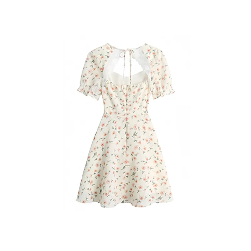 MISTVB Короткий рукав Платье Женское Розовый Цветочный