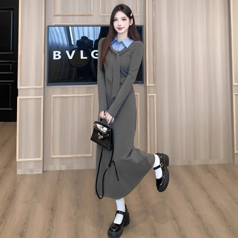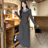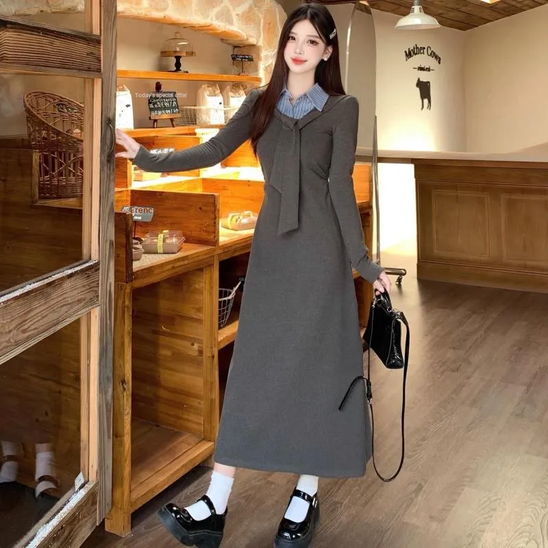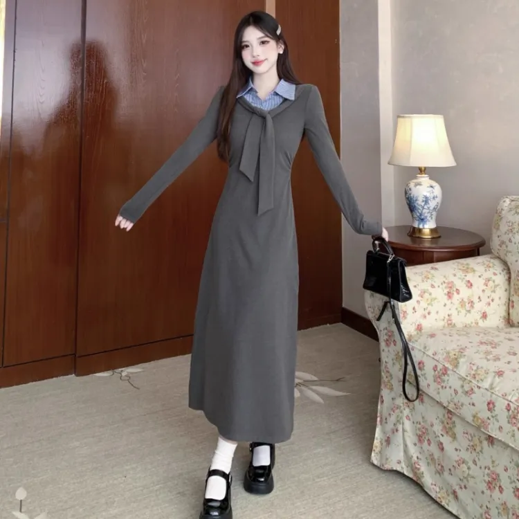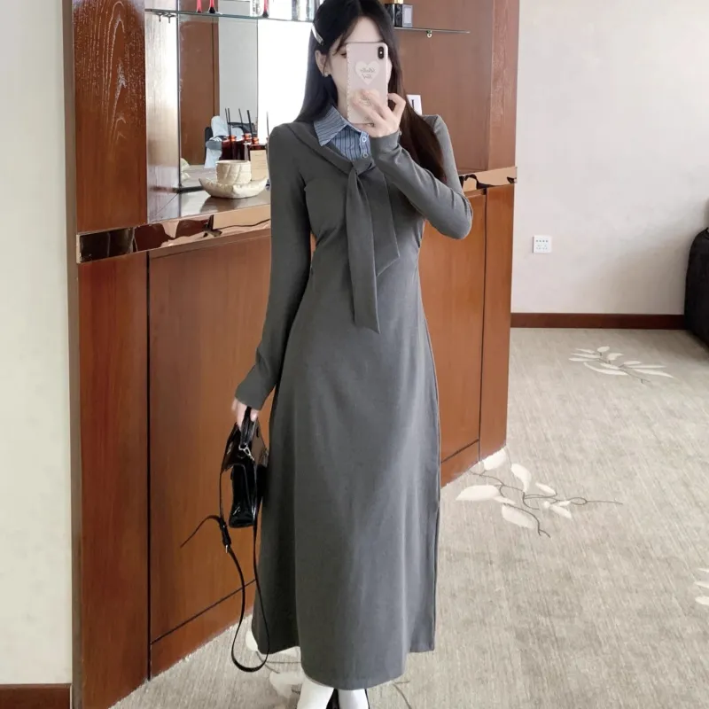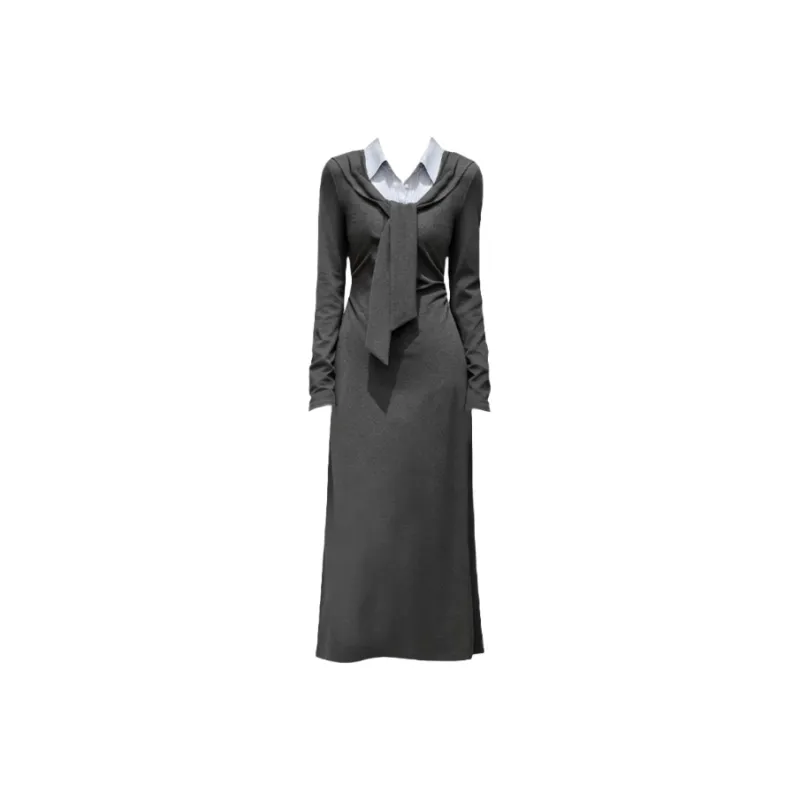MITX Серое Платье Женское Длинное с Длинными Рукавами Платья