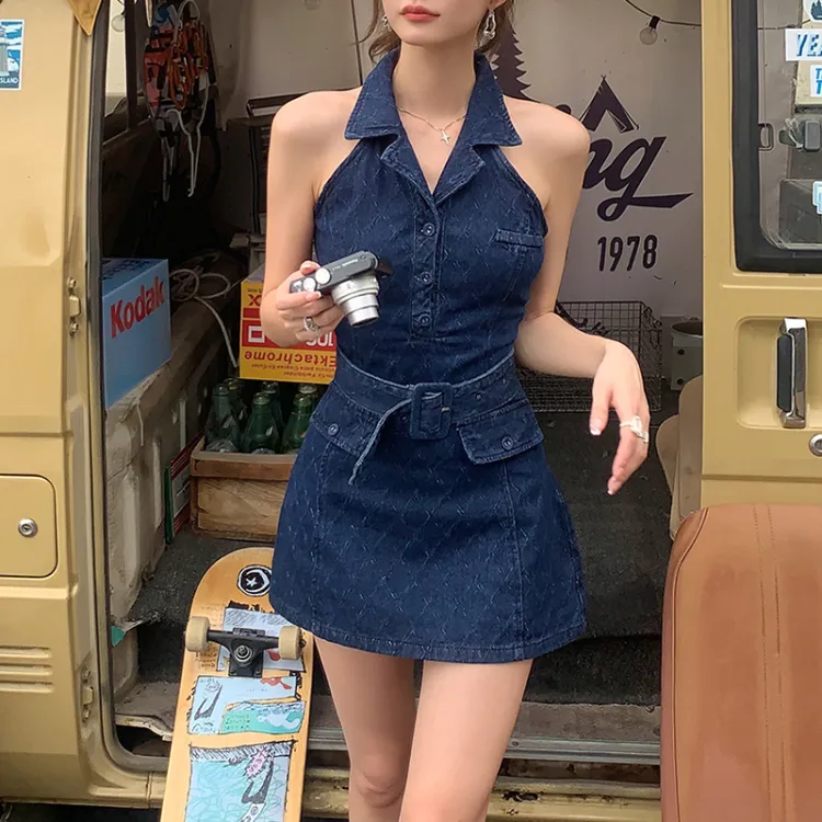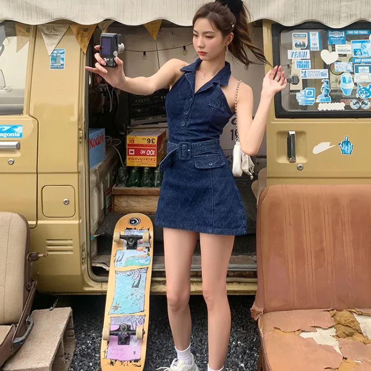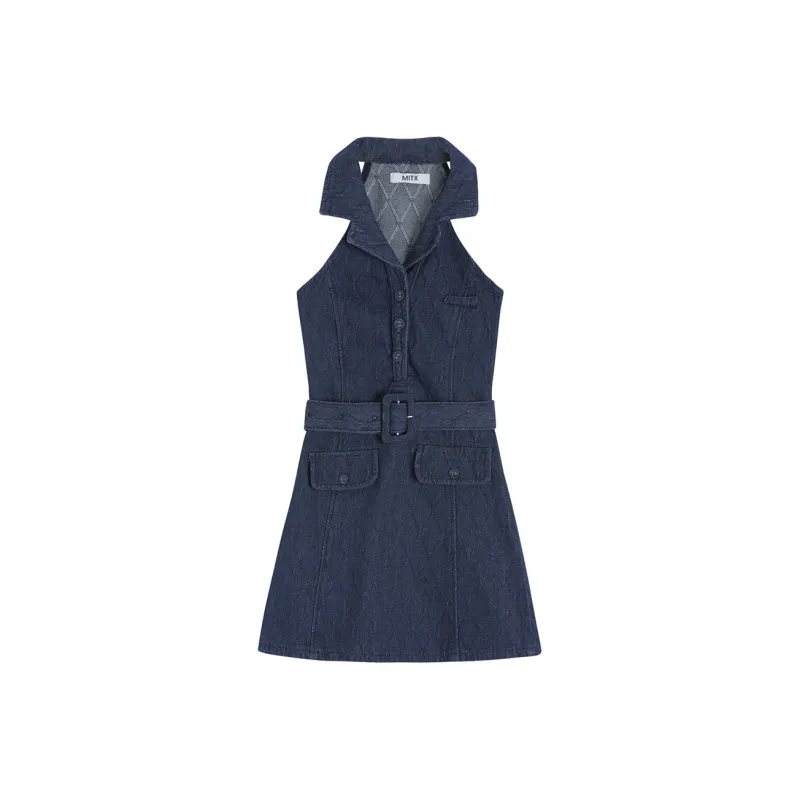 MITX Без рукавов Платье Женское Джинсовый синий
