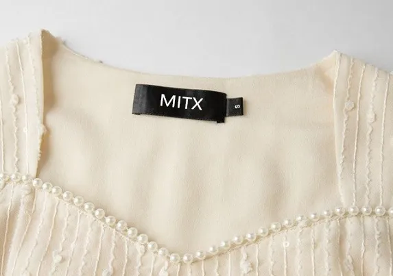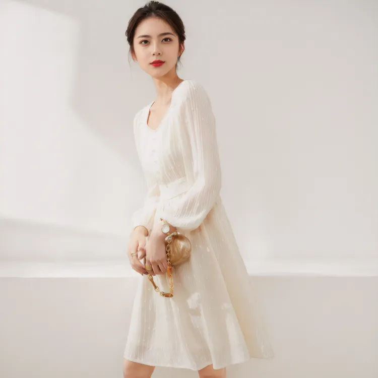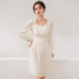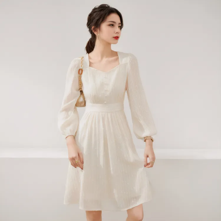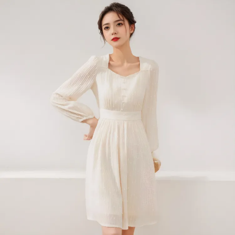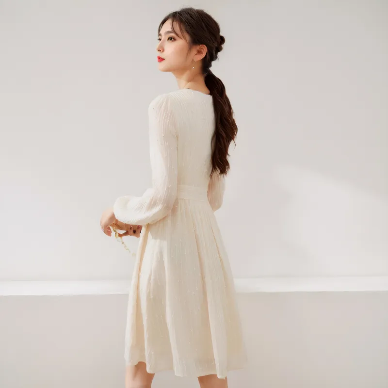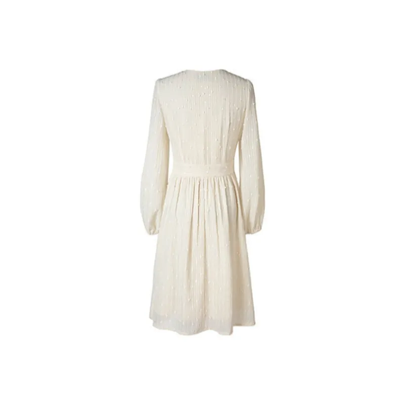 MITX Весна Длинный Рукав Платье Женские Экрю