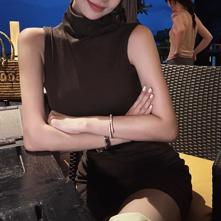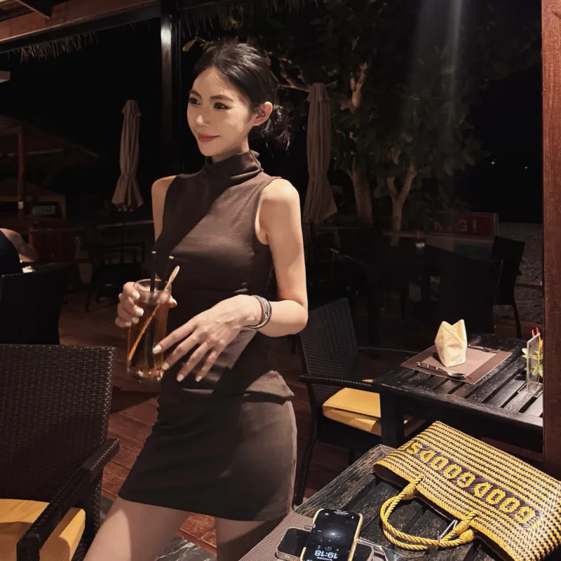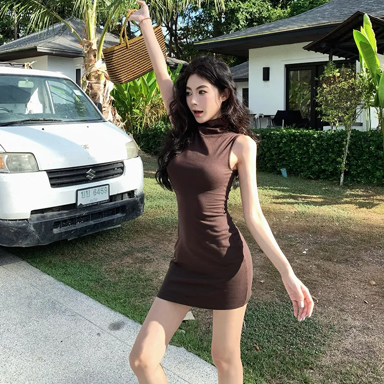MITX Летнее без рукавов платье женское кофейного цвета