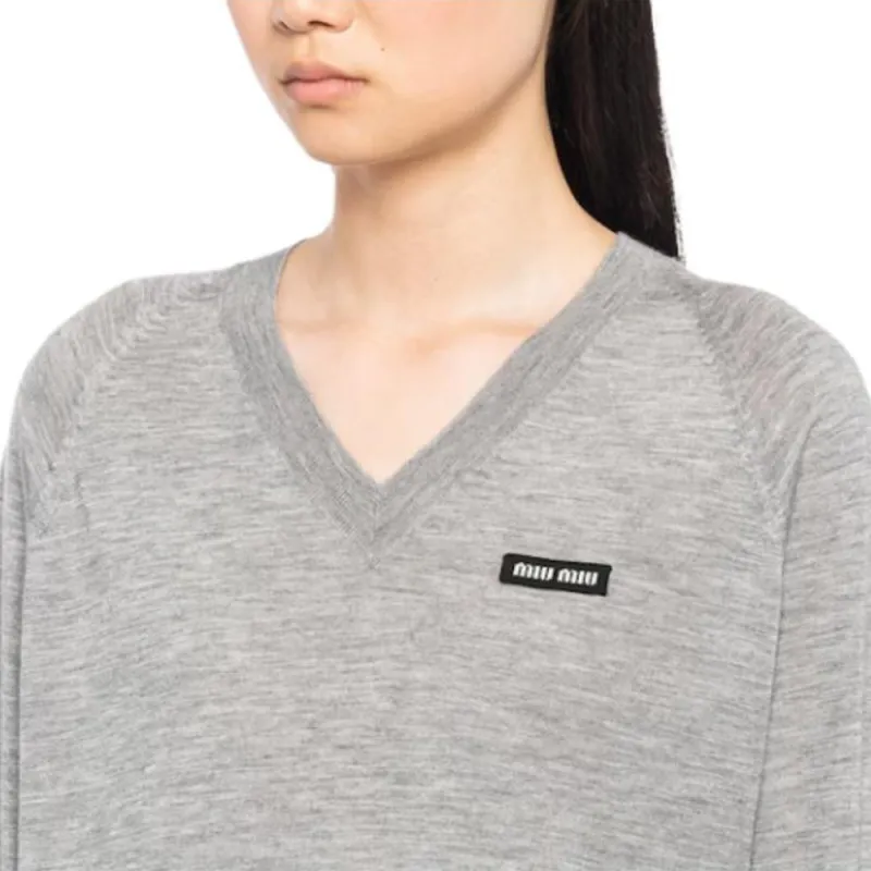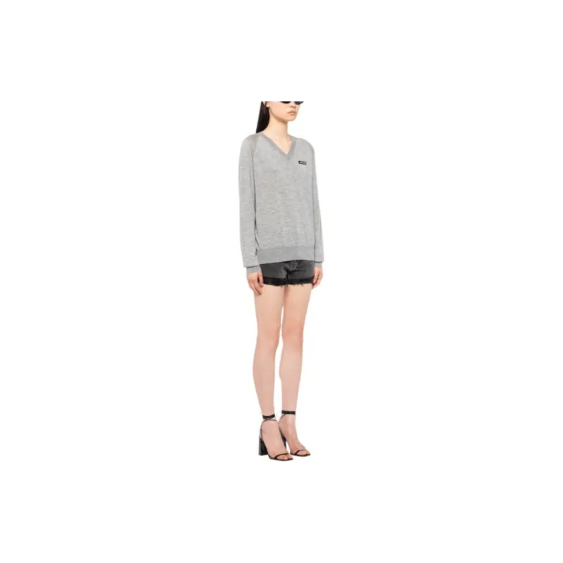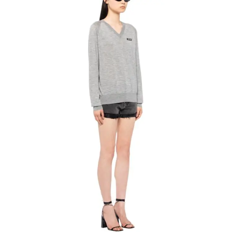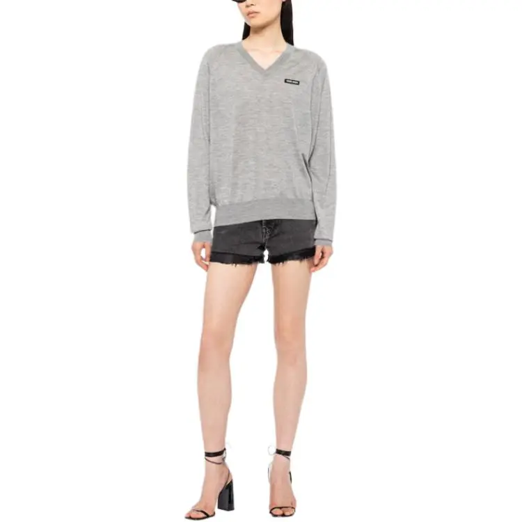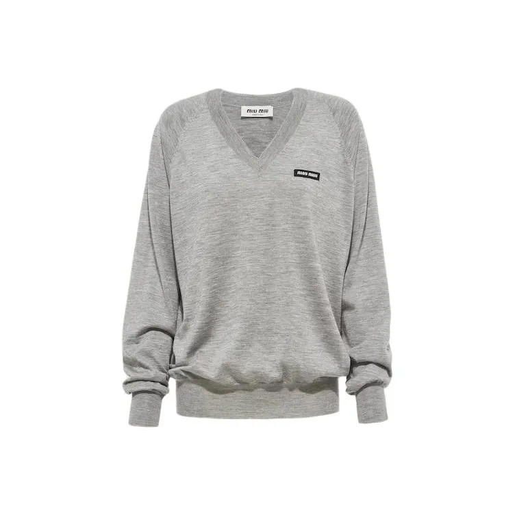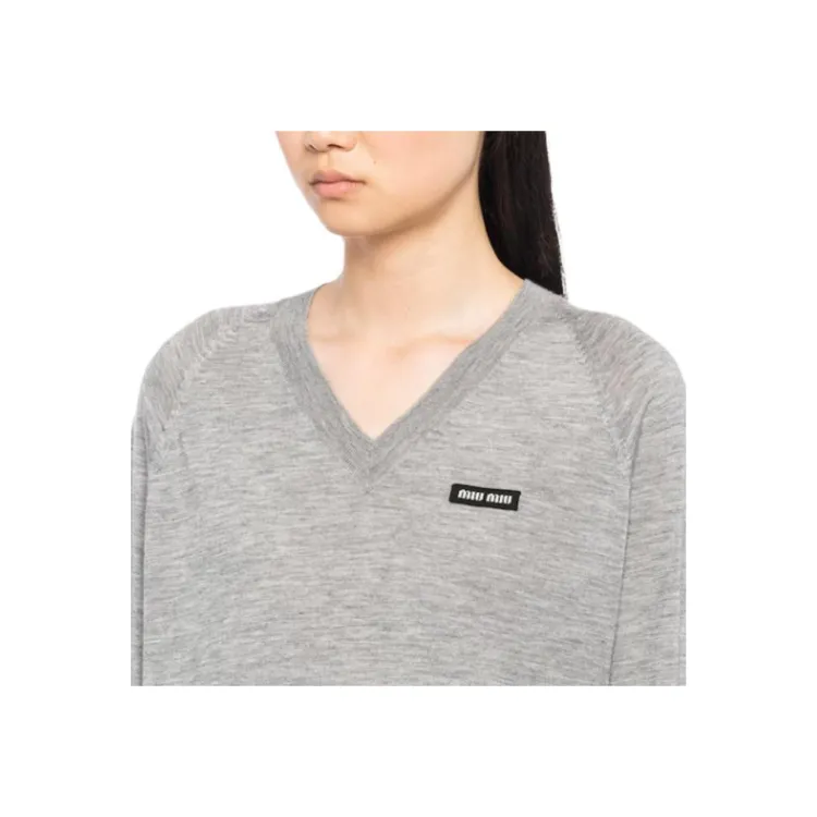 MIU MIU Кашемир и Шелк V-образный вырез Свитер Толстовка Женские Серый