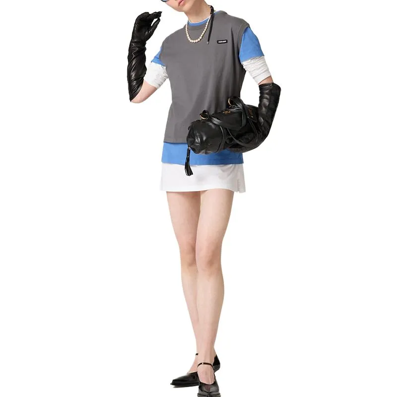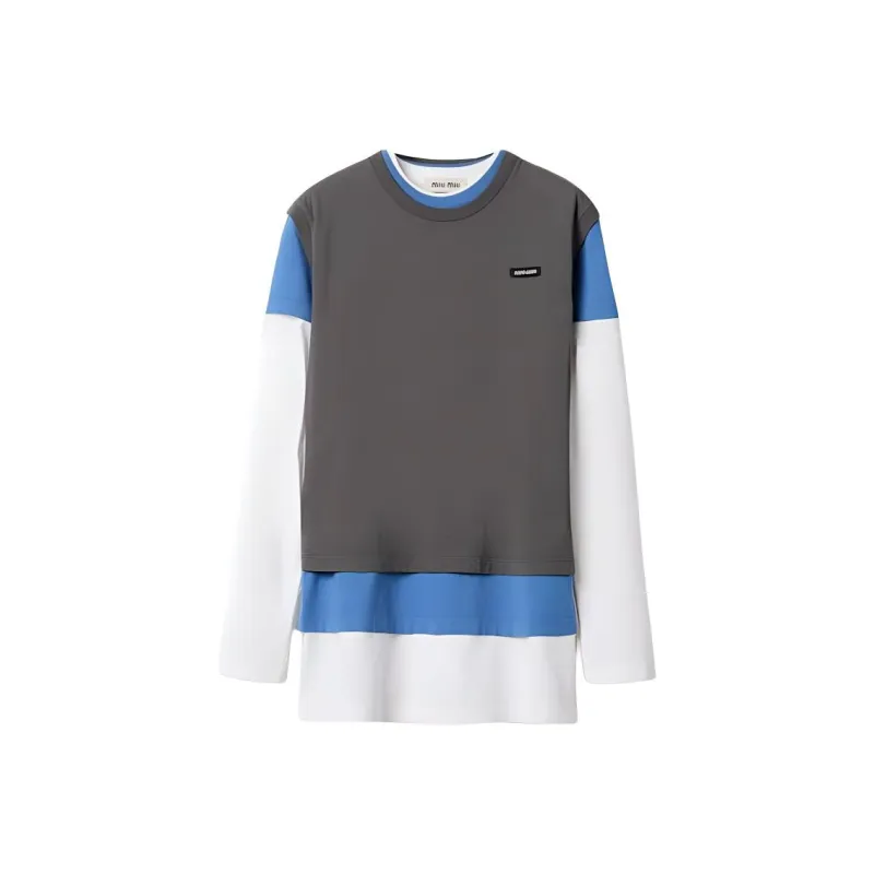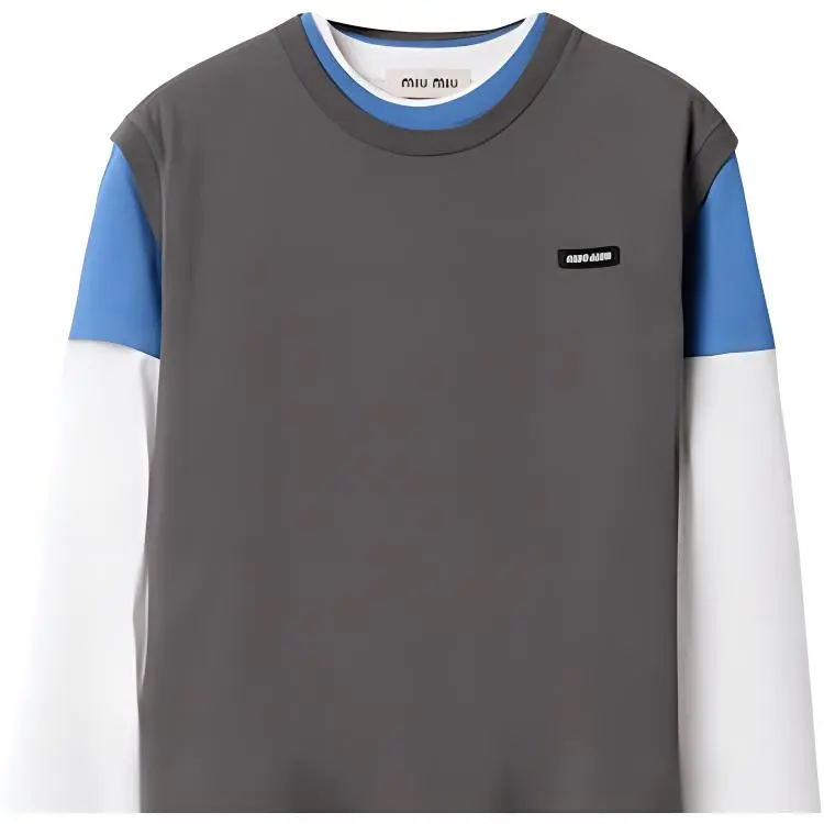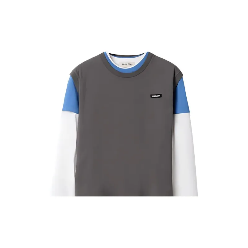 MIU MIU Holiday Collection Letter Logo Label Multicolor Crew Neck Long Sleeved T-Shirt Women's Brown