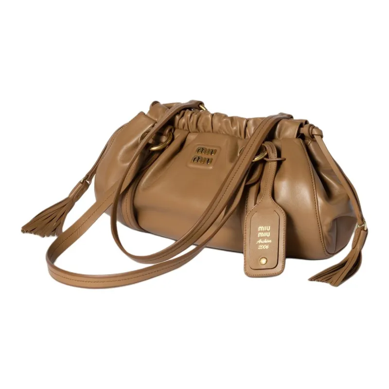 MIU MIU Joie Lambskin Плечевая сумка Маленькая Женская Карамель