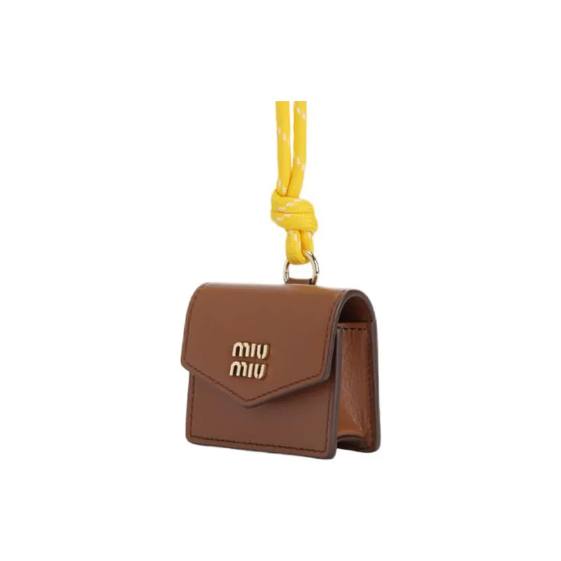 MIU MIU Кожаный чехол для наушников женский коньяк бренди и желтый