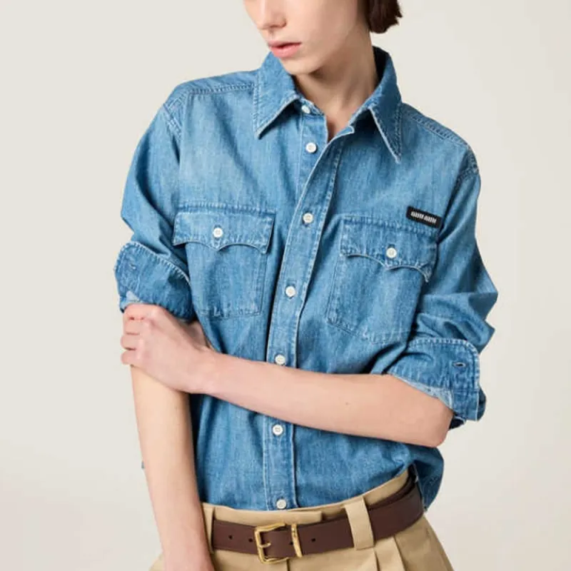 MIU MIU SS25 Рубашка Женская Синяя