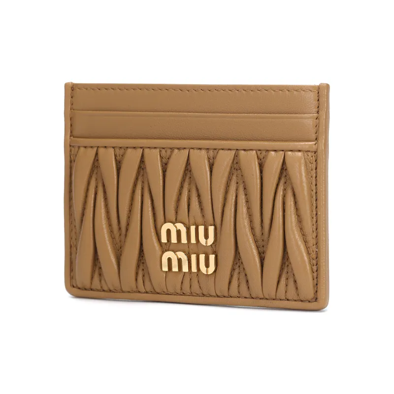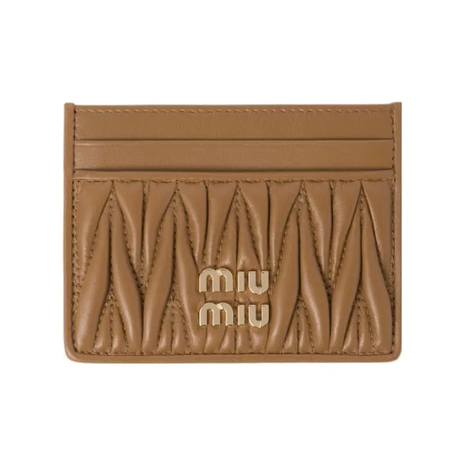MIU MIU Matelassé Кожа Наппа Держатель для карт Держатель для карт Женский Карамельный Коричневый