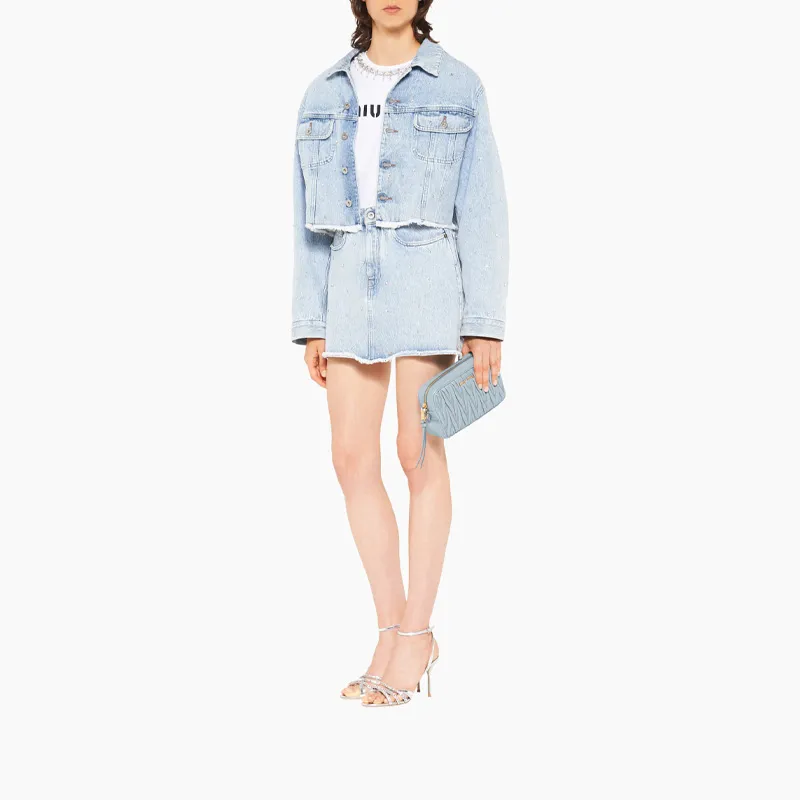 MIU MIU Matelassé Узор Мягкий Овчина Ручная Сумка через плечо Сумка на плечо Женская Светло-синяя