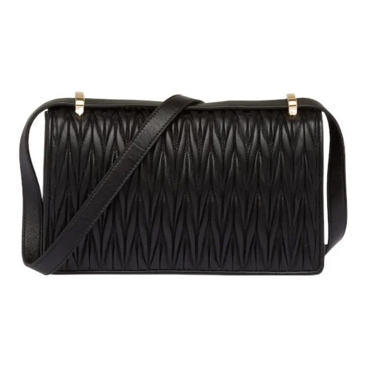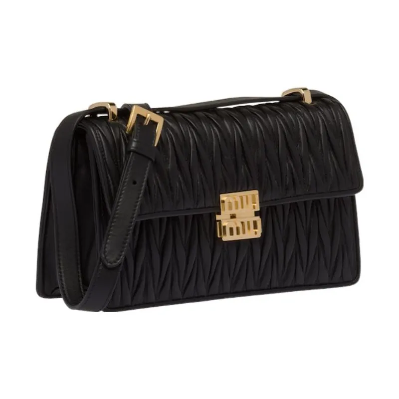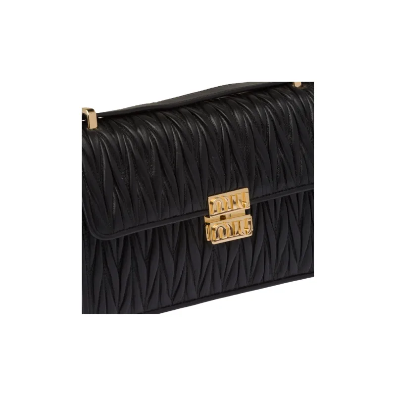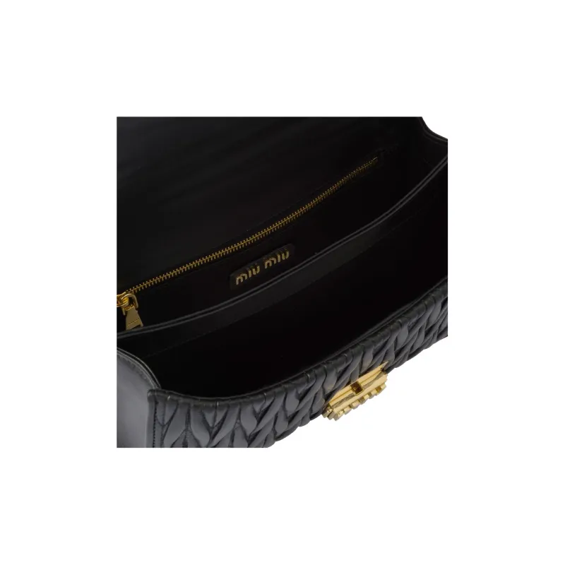 MIU MIU Matelassé Мягкий Овца Кожа Сумка через плечо Сумка на плечо Женская Черная