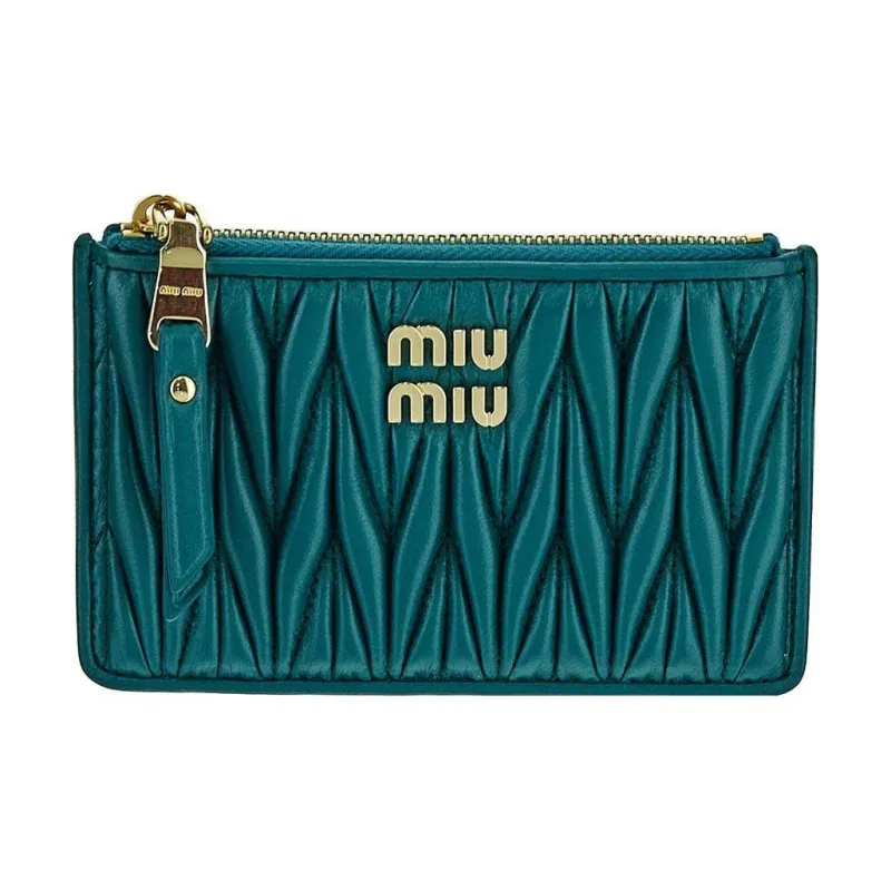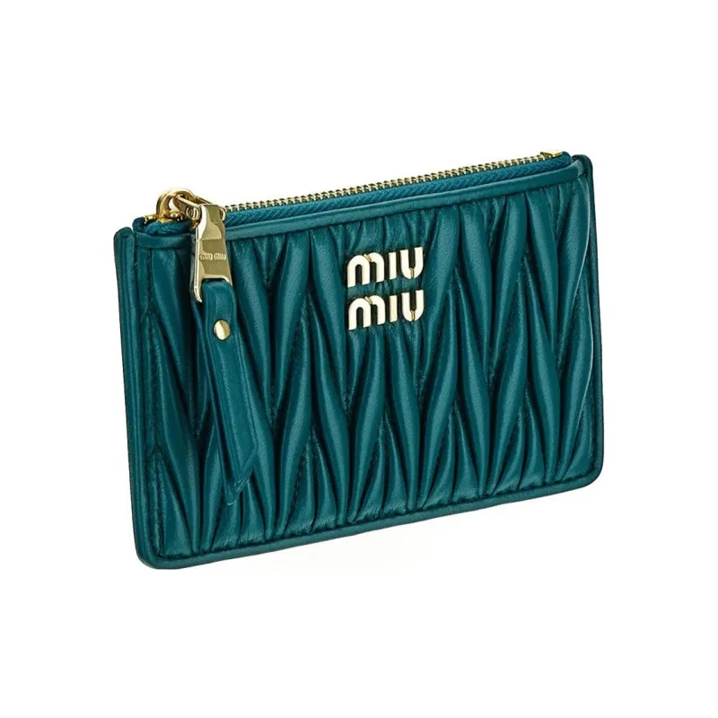 MIU MIU Matelassé Мягкий Овца Кожа Конверт Позиционирование стиля Кошелек Обычный Женские Озерно-голубой