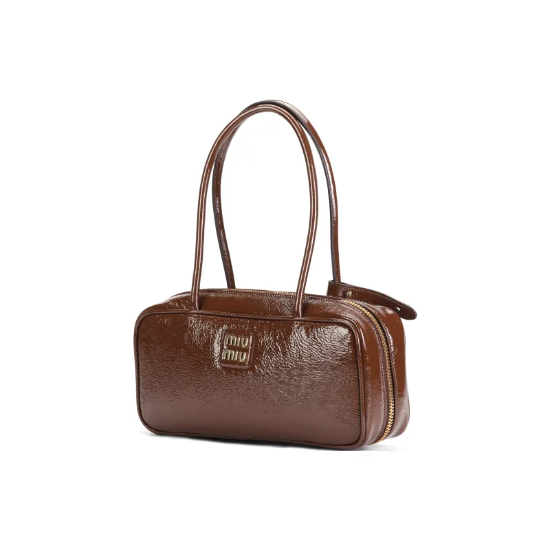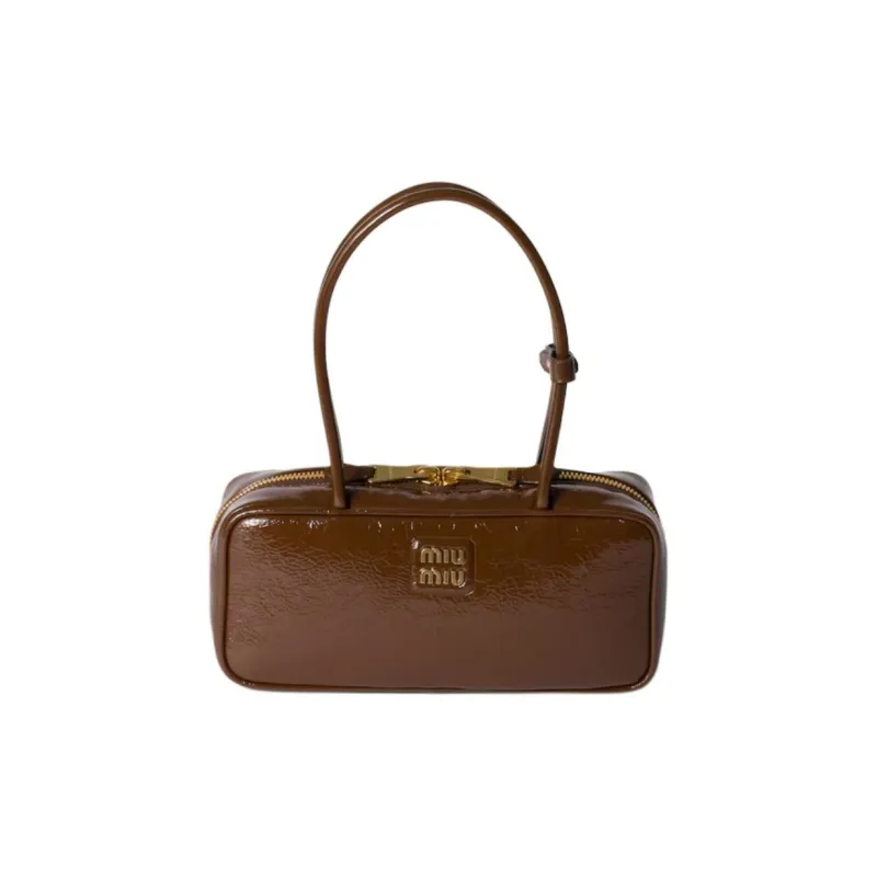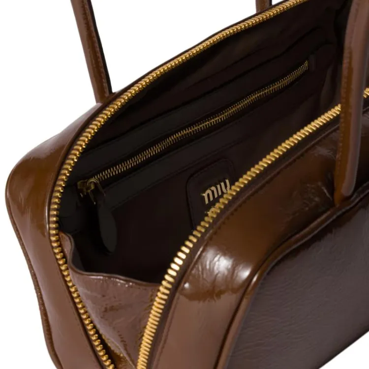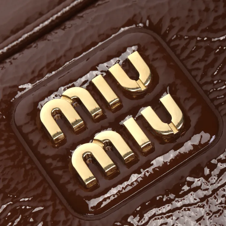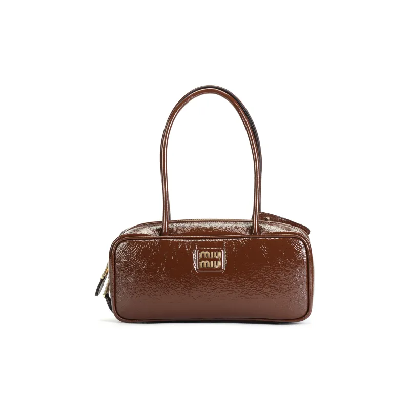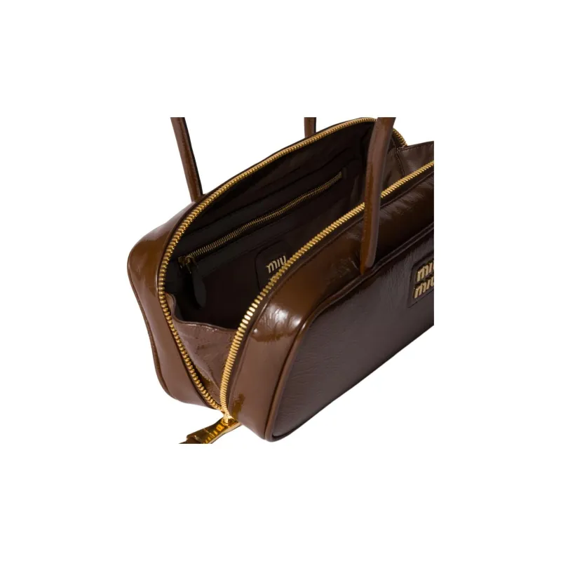 MIU MIU Naplak Лакированная поверхность Овчина Сумка Женские Коричневый
