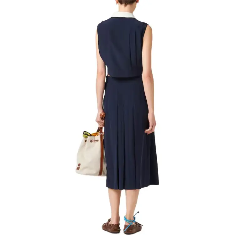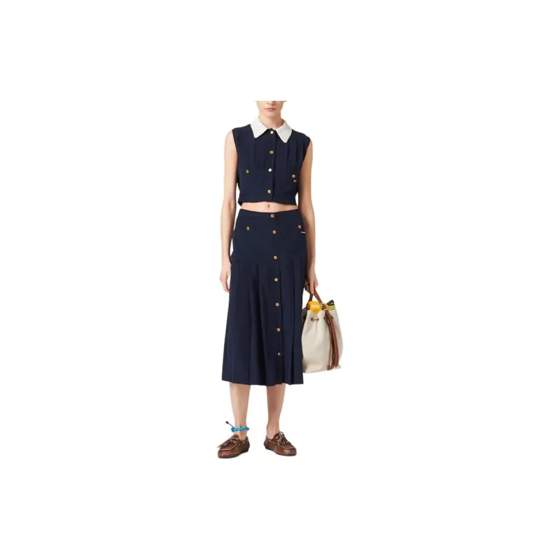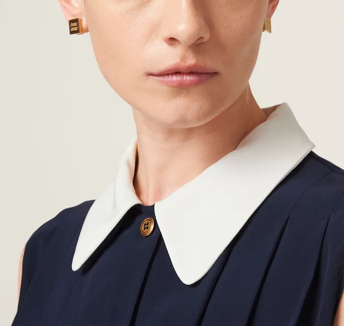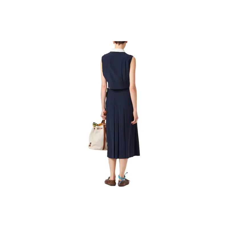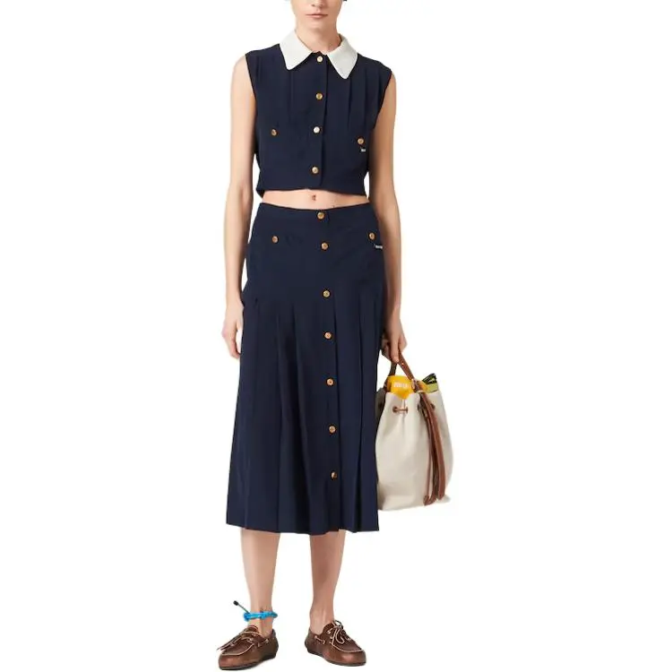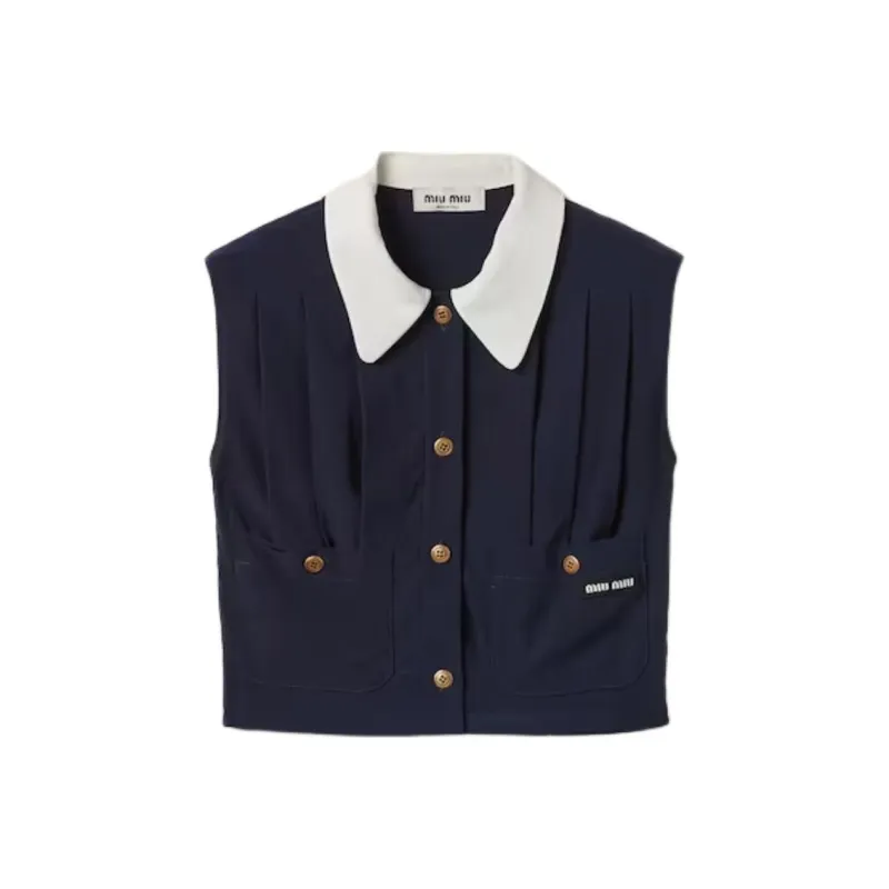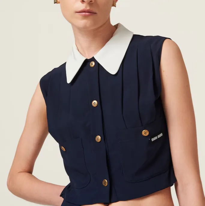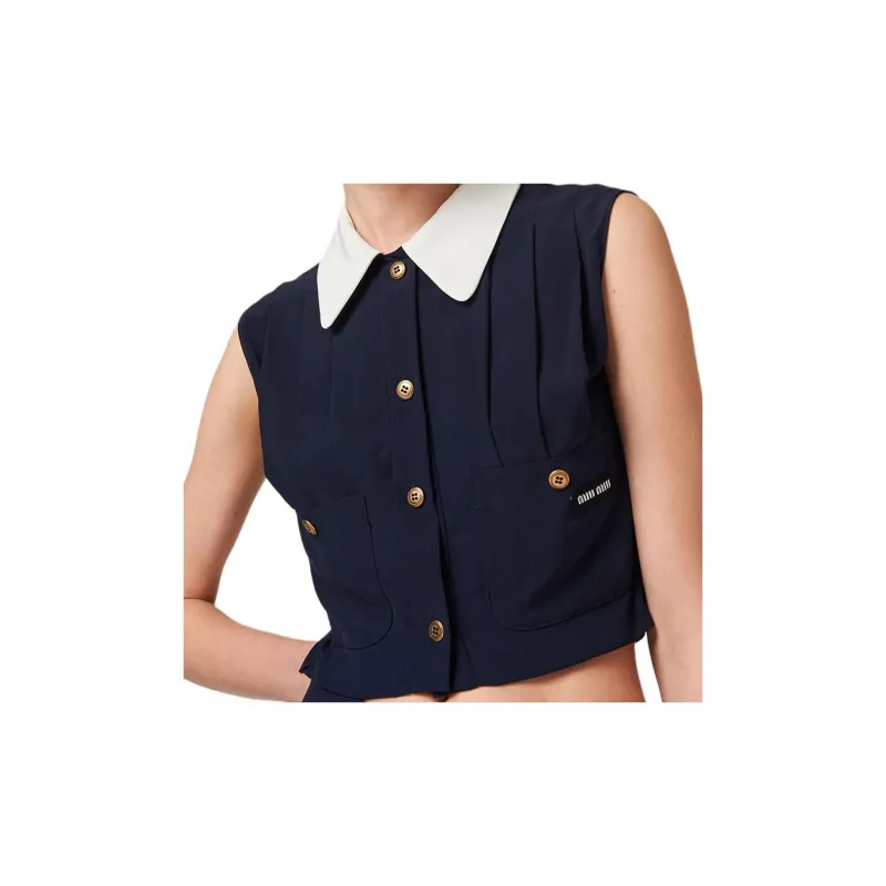 MIU MIU Плиссированный топ Marocain CROP TOP Женский Морской синий