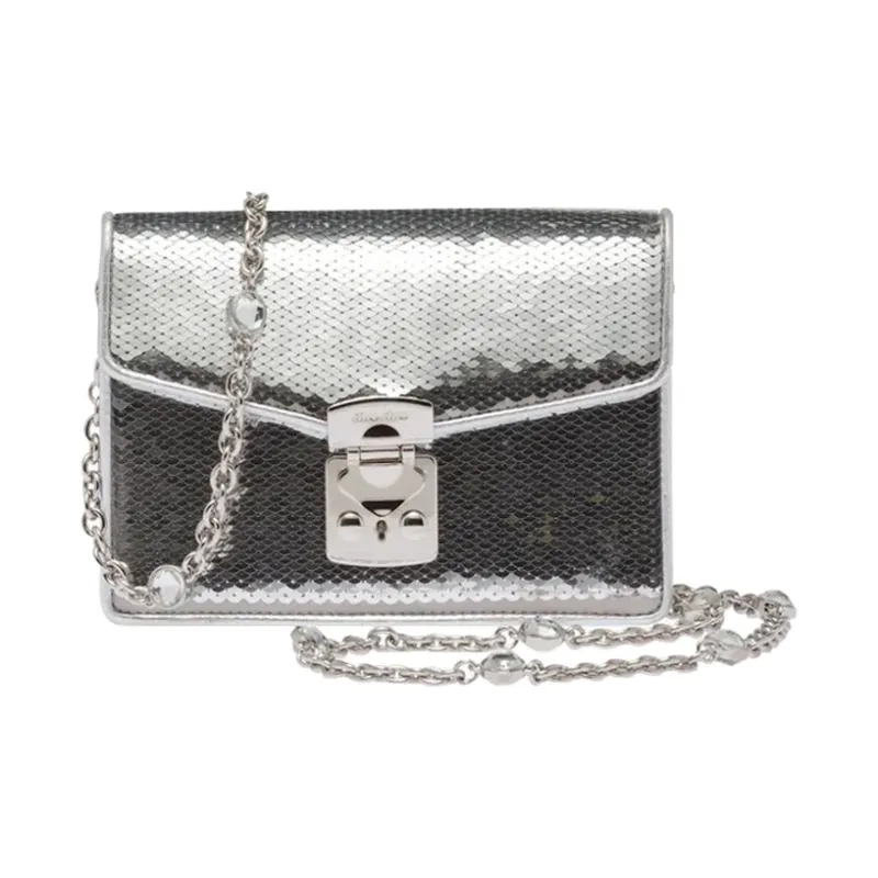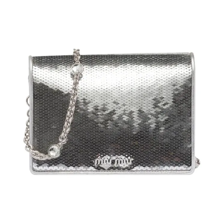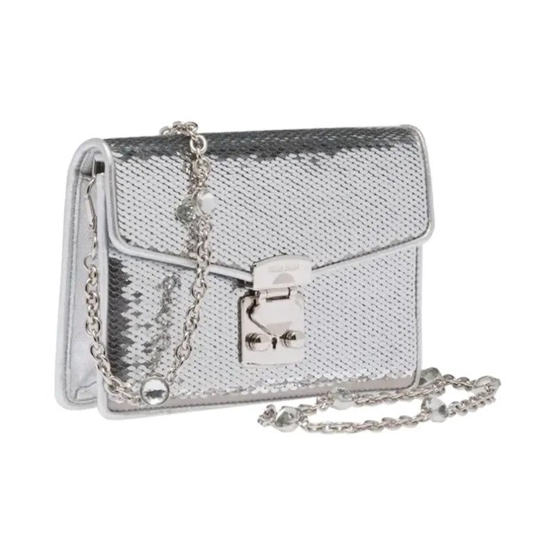 MIU MIU Овчина Блестки Сумка через плечо Сумка на плечо Женская Серебряная