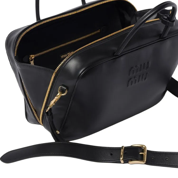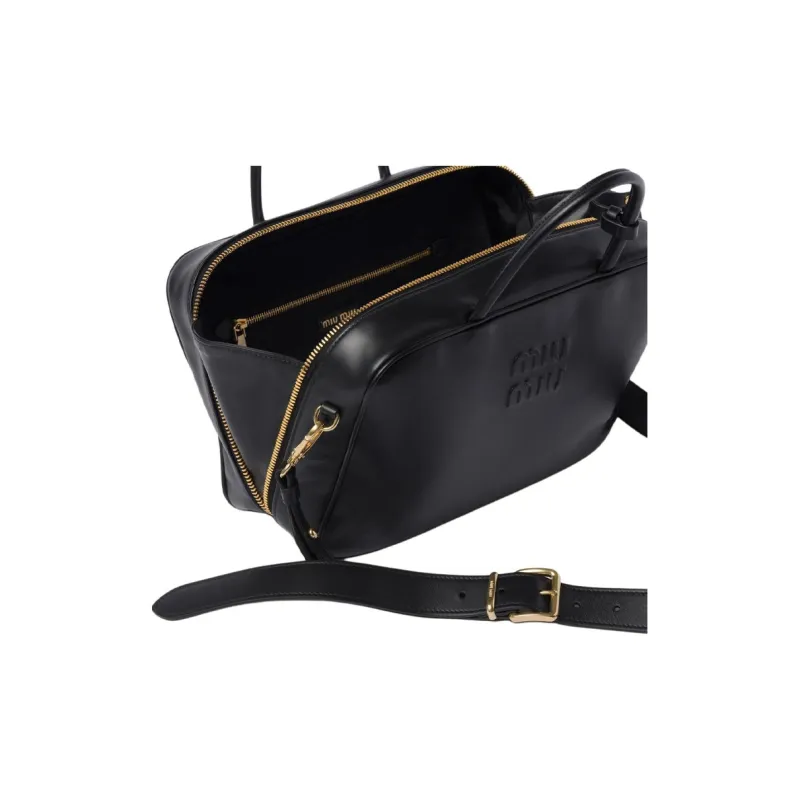 MIU MIU Soft Sheep Leather Bowling Bag Shoulder Bag Handbag Regular Unisex Black MIU MIU Мягкий Овца Кожа Боулинг Сумка Плечевая Сумка Сумка Регулярная Унисекс Черная