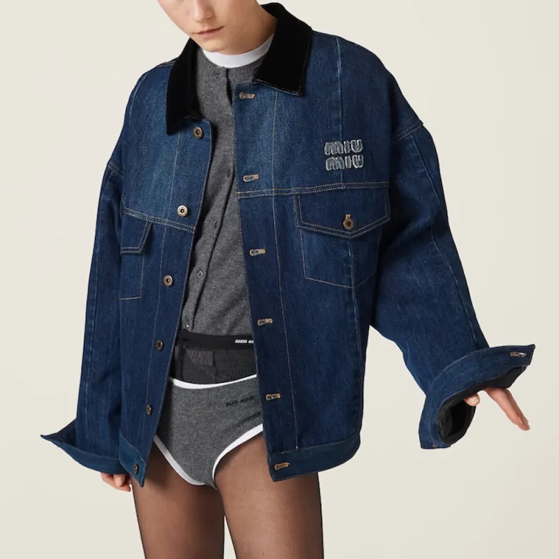 MIU MIU SS24 Denim Jacket Women's Navy Blue