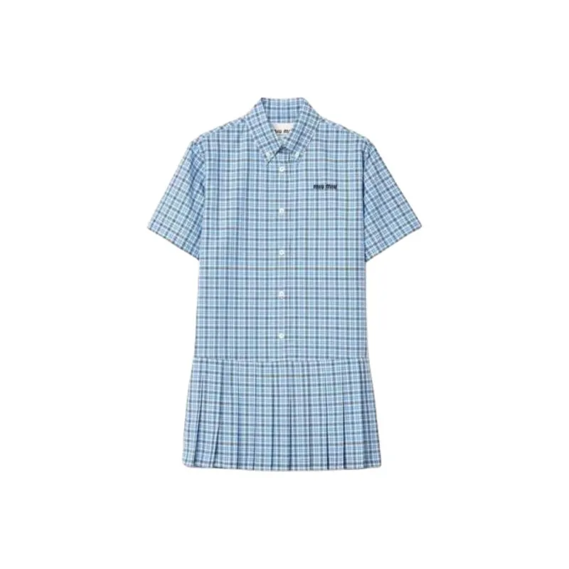 MIU MIU SS25 Короткий рукав Платье Женское Небесно-голубой