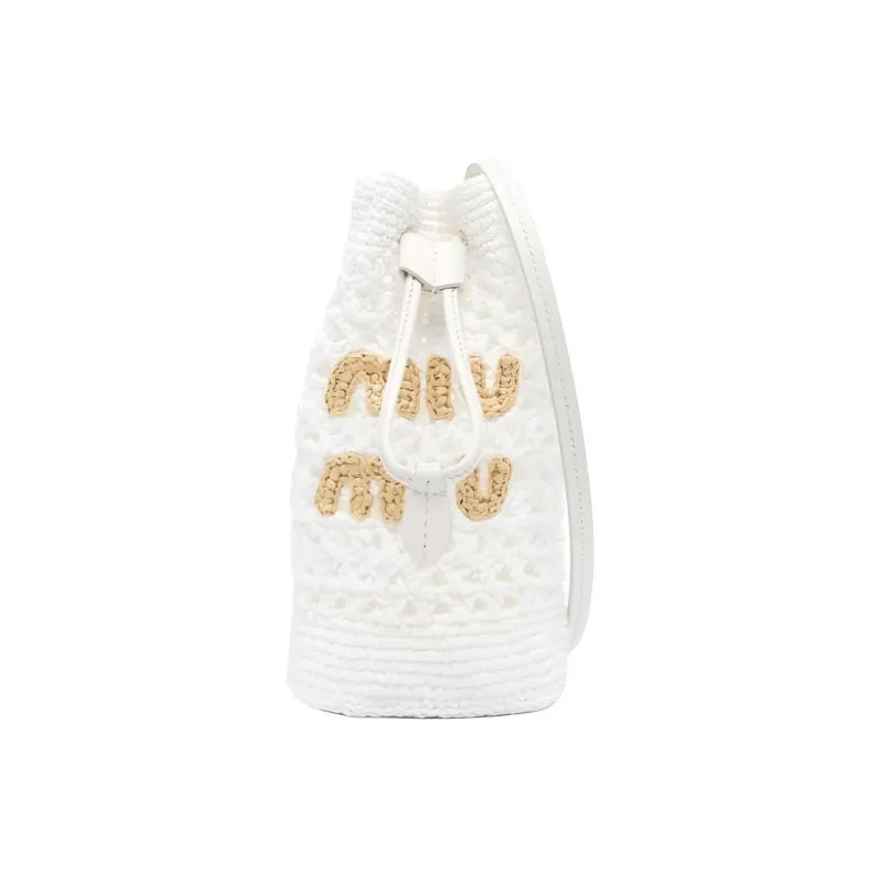 MIU MIU Соломенная плетеная сумка ведрообразной формы сумка через плечо плечевая сумка женская белая и бежевая
