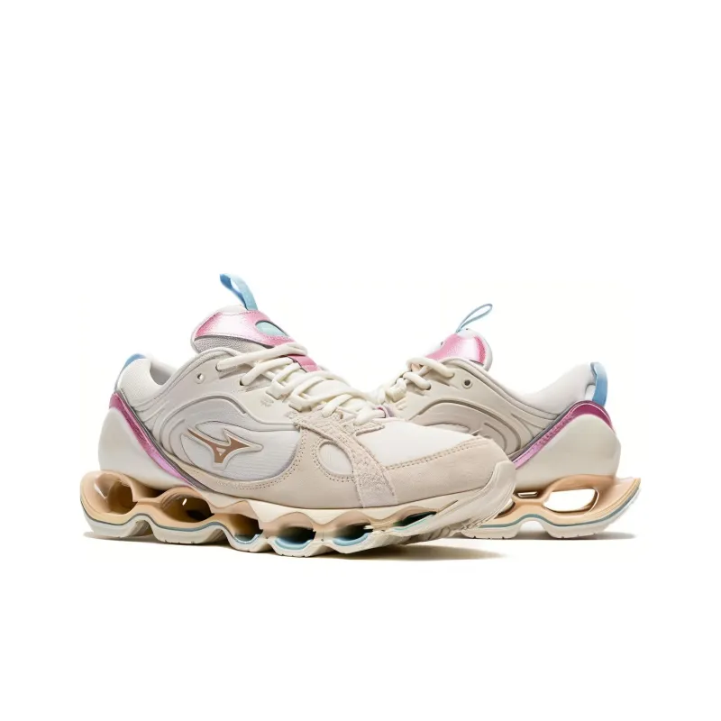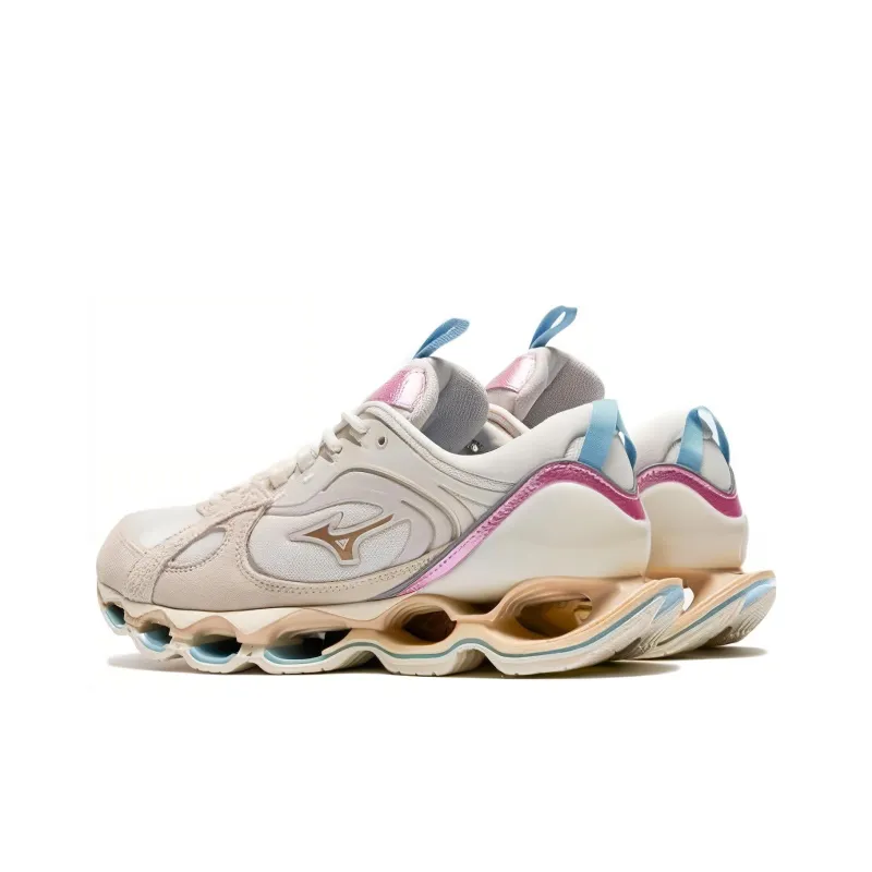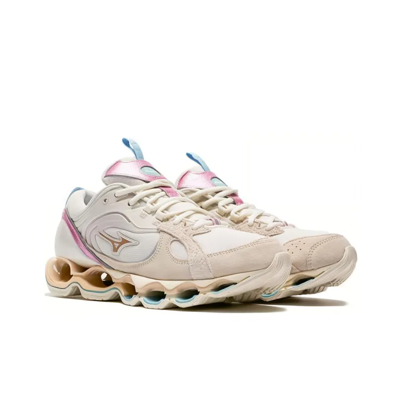 Mizuno Wave Prophecy Beta 2 Устойчивые к истиранию Дышащие Низкие Беговые кроссовки Унисекс Бежево-розовые