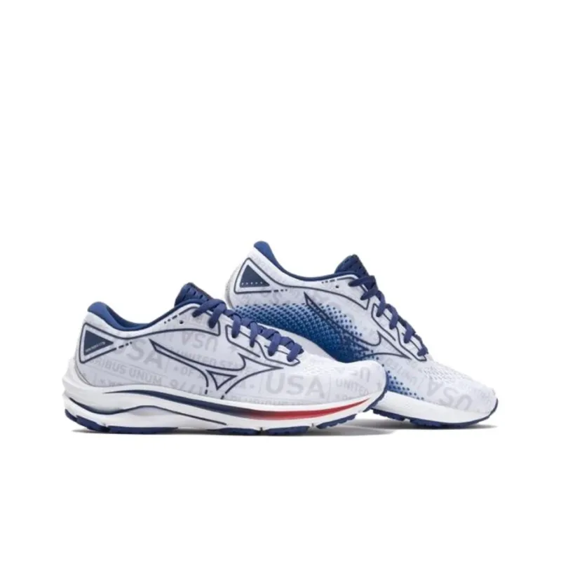 Mizuno Wave Rider 25 Противоскользящие Устойчивые к износу Дышащие Низкие Беговые кроссовки Женские Белые Синие