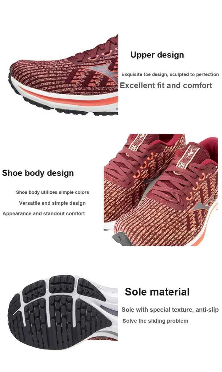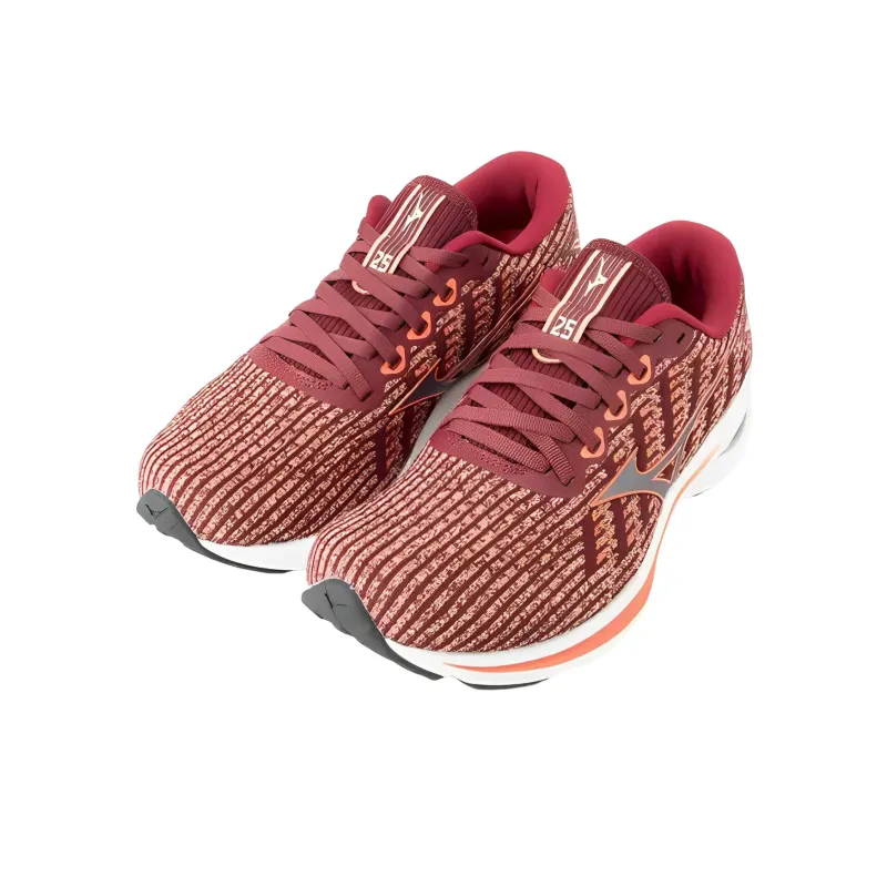 Mizuno Wave Rider 25 Waveknit Устойчивые к истиранию Низкие Беговые кроссовки Женские Красные