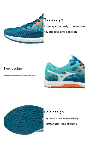 Mizuno Wave Sonic 2 Противоскользящие Амортизирующие Устойчивые к износу Низкие Беговые кроссовки Женские Сине-белые