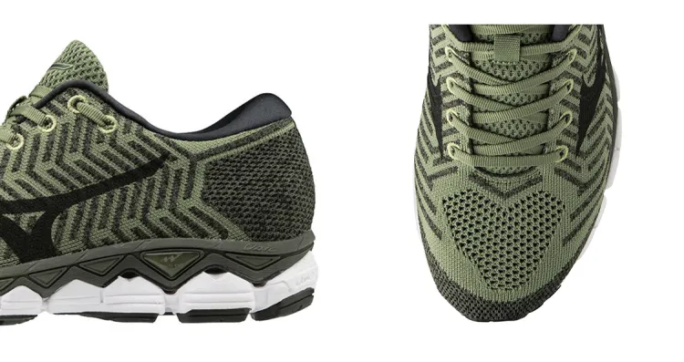 Mizuno Waveknit S1 Амортизация Износостойкий Низкий Топ Беговые кроссовки Унисекс Армейский зеленый