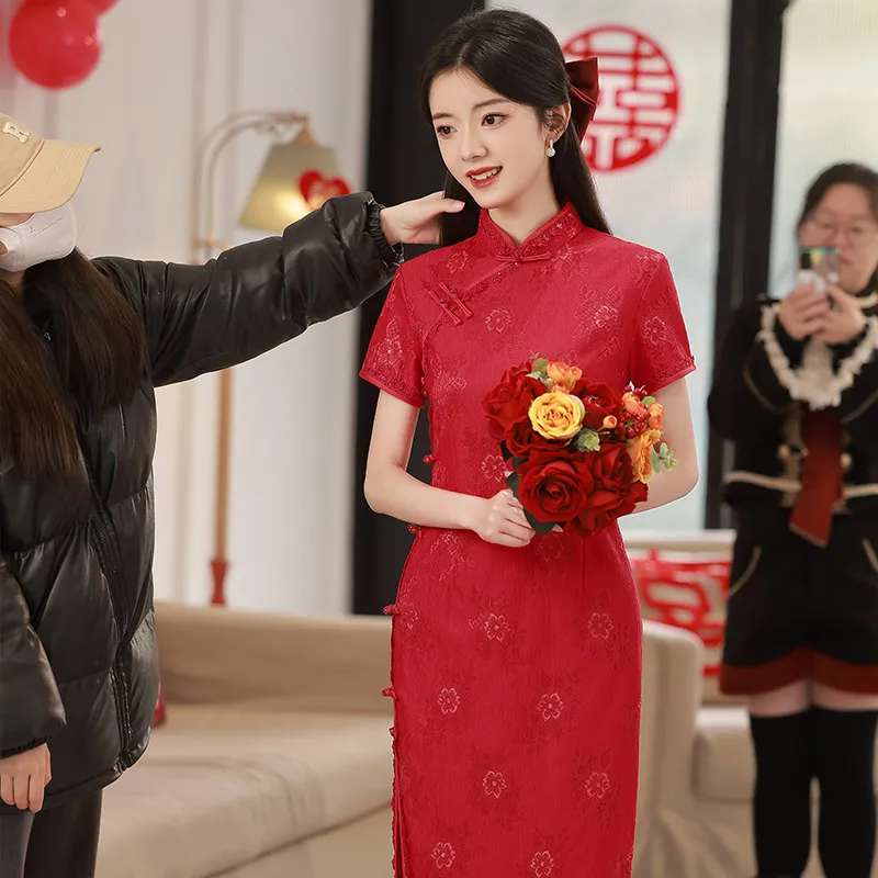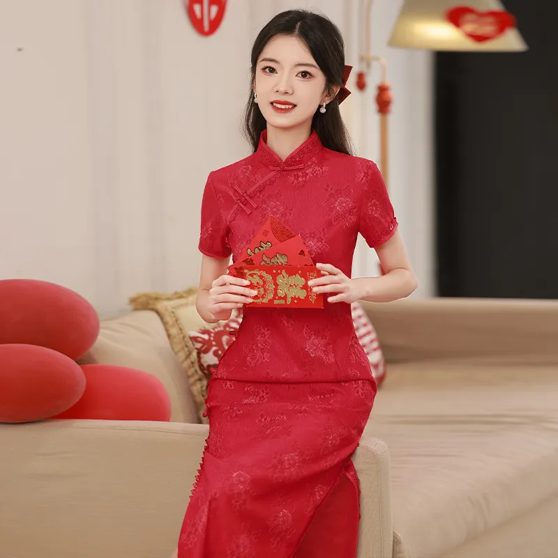 MJ Праздничный красный Женские Ципао