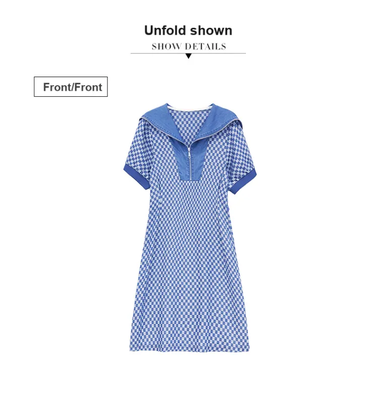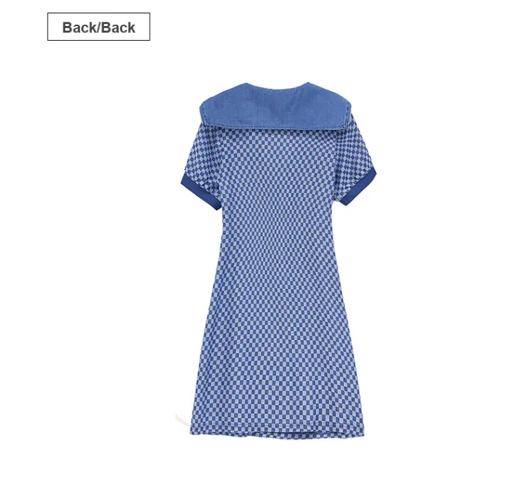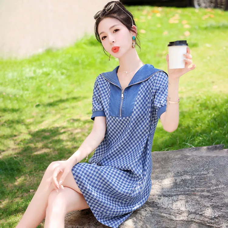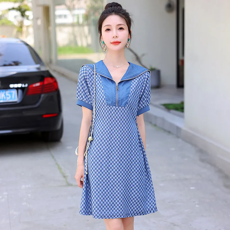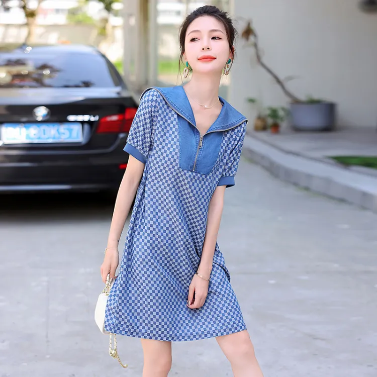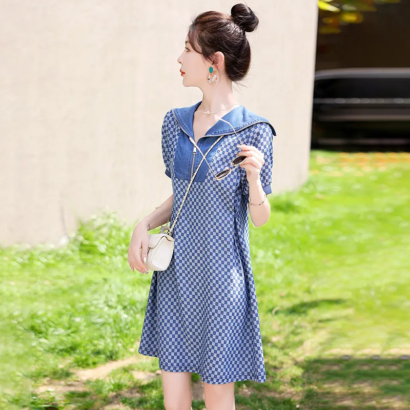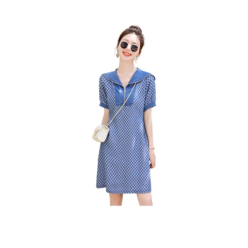 MJ Короткий рукав Платье Женское Джинсовый синий