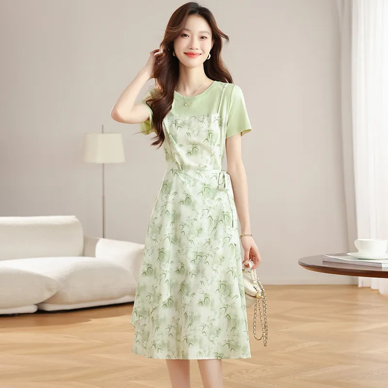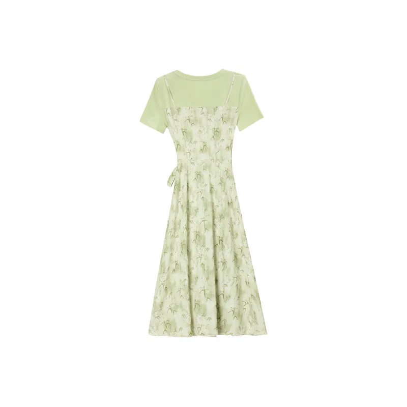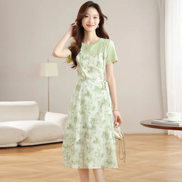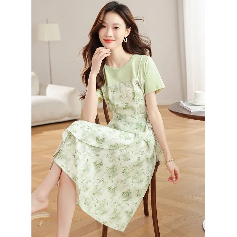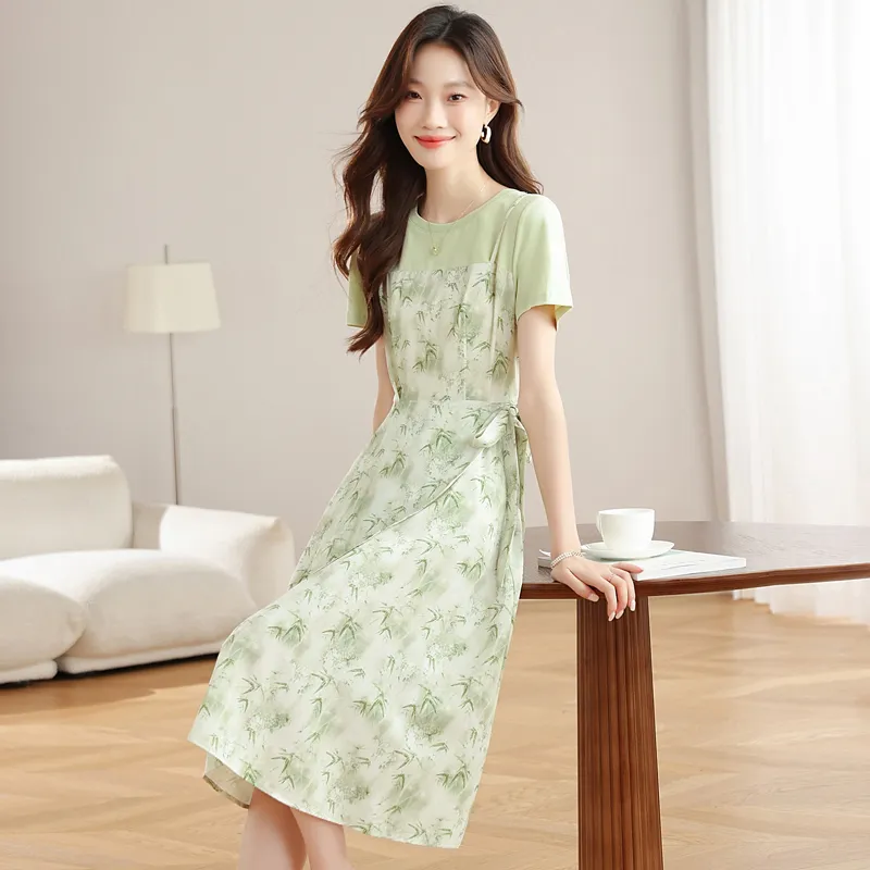MJ Светло-зеленый Женские Короткие Платья с Рукавами