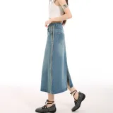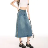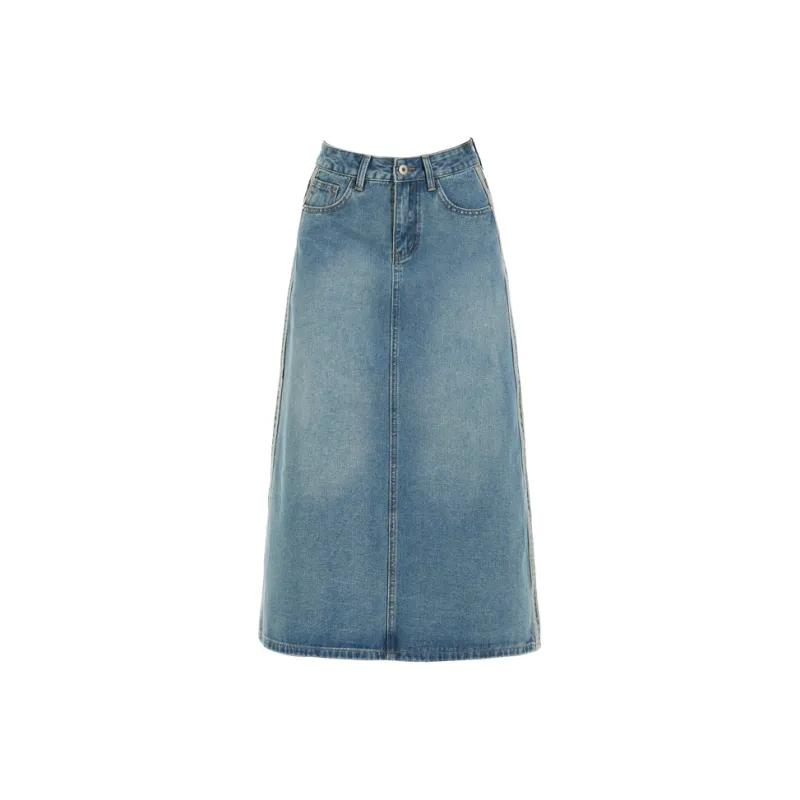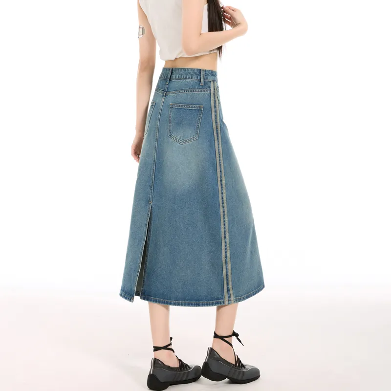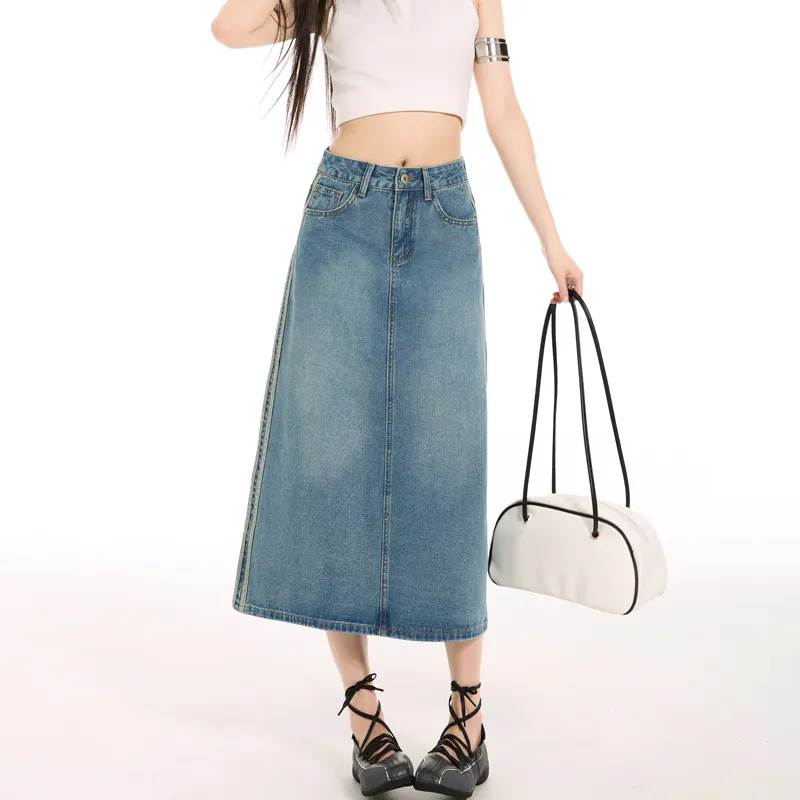 MJB Винтажные синие женские джинсовые длинные юбки