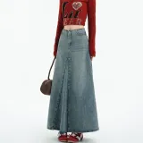 MJB Винтажный синий женский джинсовый длинный кардиган