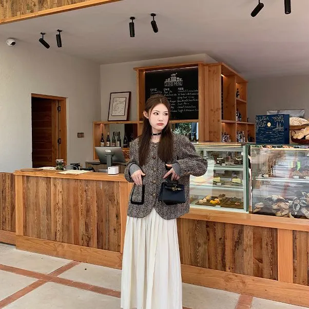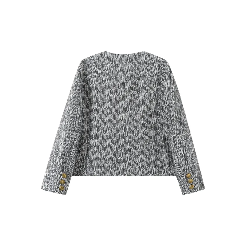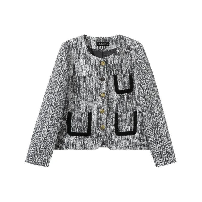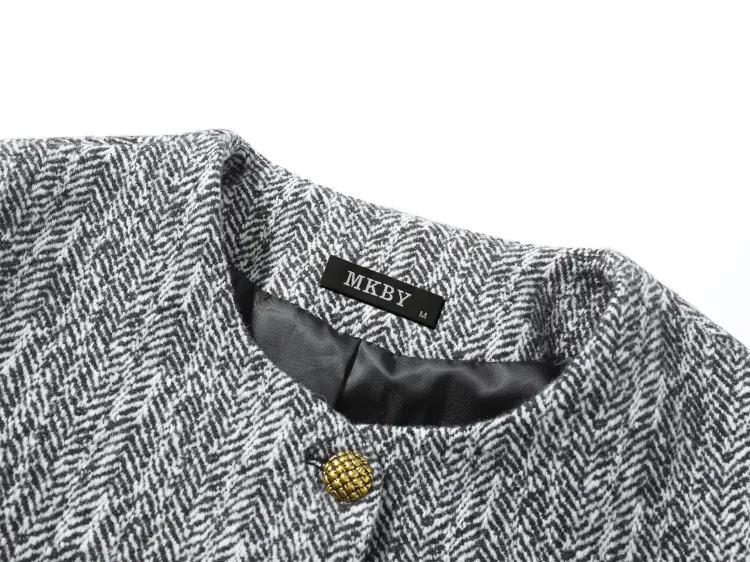 MKBY Узор "елочка" Длинный Sleeved Coat Женские Короткие пальто