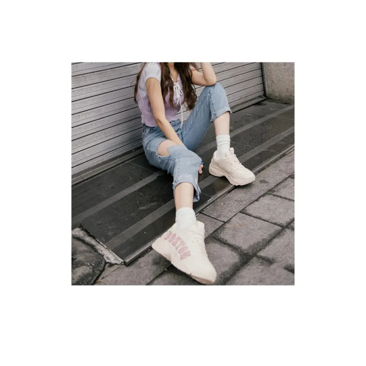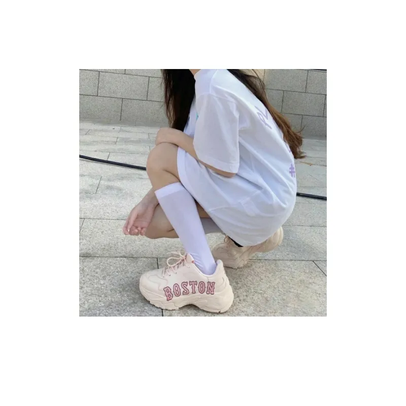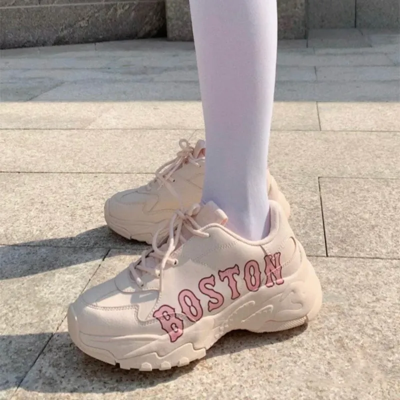 Mlb Base Logo Big Ball Chunky P Бостон Антислип Резистентный к износу Низкий Топ Кроссовки Унисекс Розовые