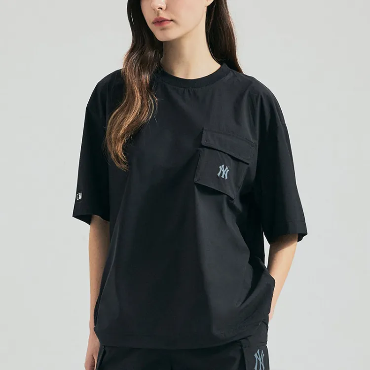 Mlb Base Logo Рукав с спущенным плечом T-рубашка Женская Черная