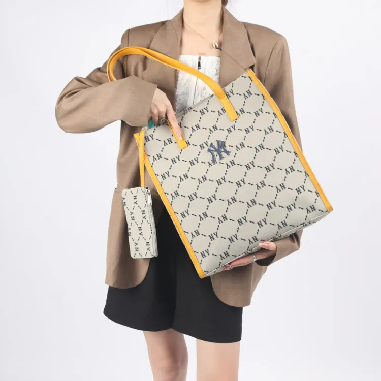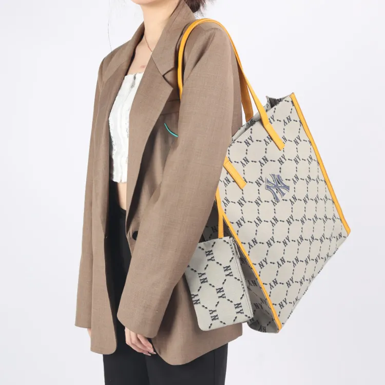 MLB MONOGRAM Коллекция Полиэстер Тоут Сумка Сумка для покупок Комбинированная сумка Сумка на плечо Сумка Обычный Унисекс Желто-коричневый