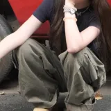 Mlpstudio Карго Брюки Женские Серый Зеленый