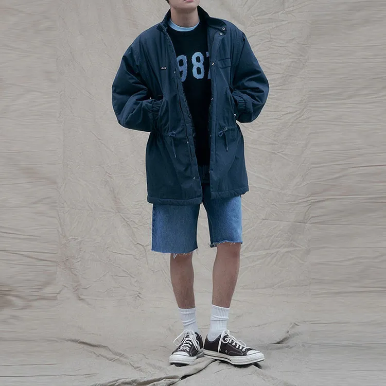 MMLG Однотонный Letters Воротник-стойка Свободный крой MID Длина Пуховая куртка Унисекс