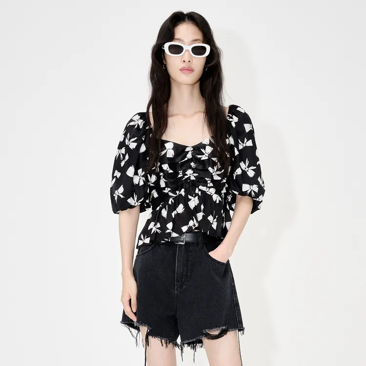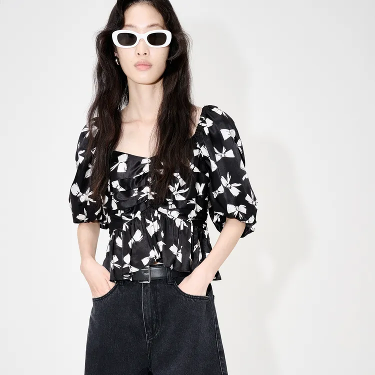 MO&CO Черный с белым Многоцветный Женские Короткие топы