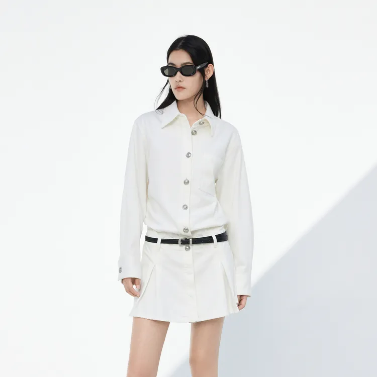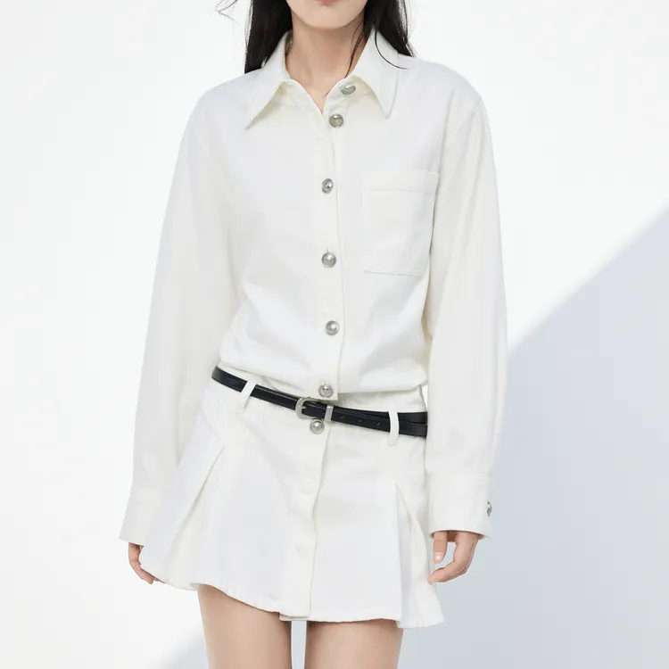 MO&CO Джинсовый Белый Женские Длинные Платья с Рукавами