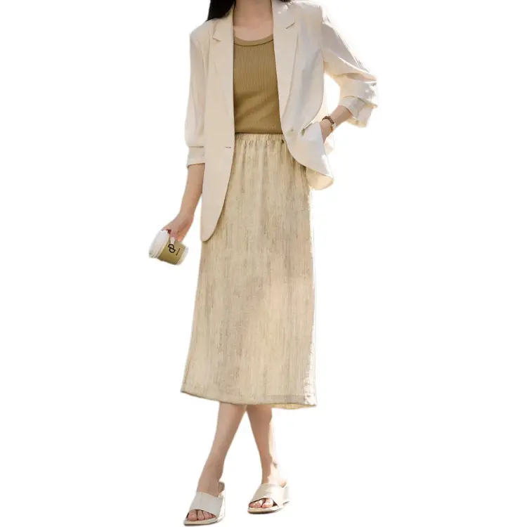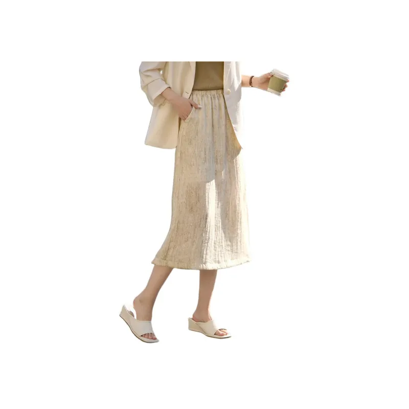 Mo Han Yi Mei Повседневный Длинный Юбка Женские Абрикос
