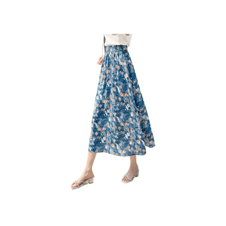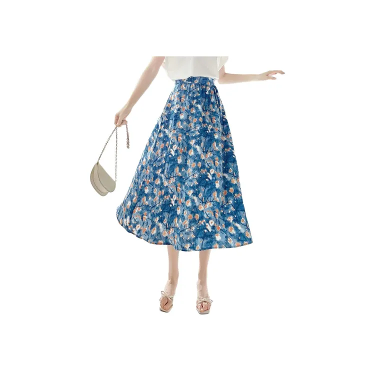 Mo Han Yi Mei Повседневный Длинный Юбка Женские Синий
