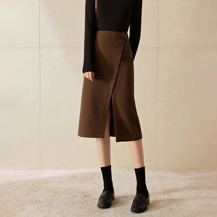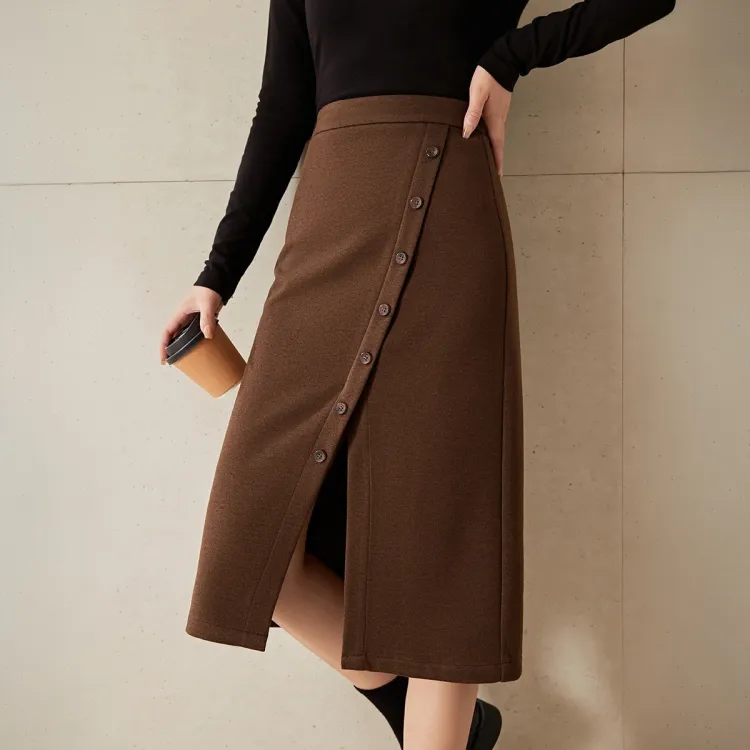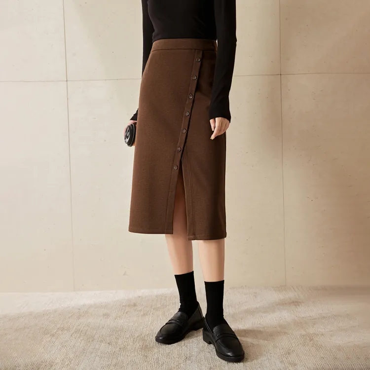 Mo Han Yi Mei Повседневный Длинный Юбка Женские Кофе