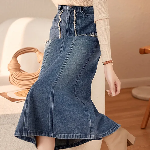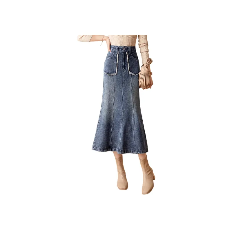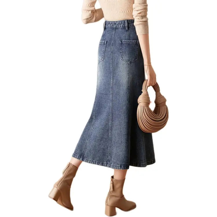 Mo Han Yi Mei Деним Длинная Юбка Женская Синяя
