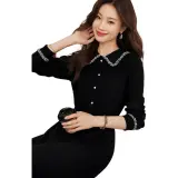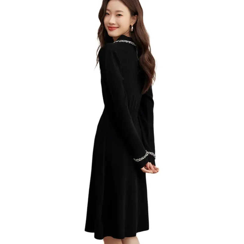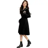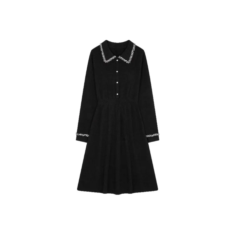 Mo Han Yi Mei Длинный рукав Платье Женское Черное