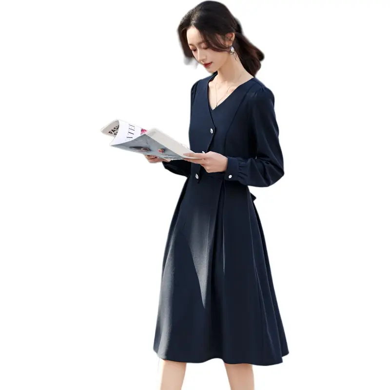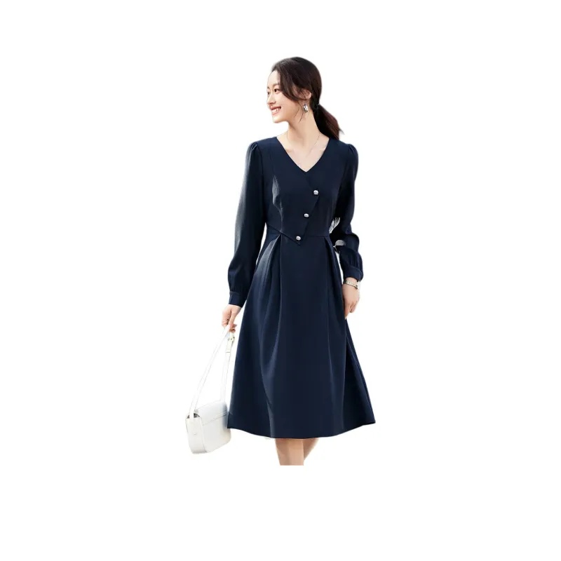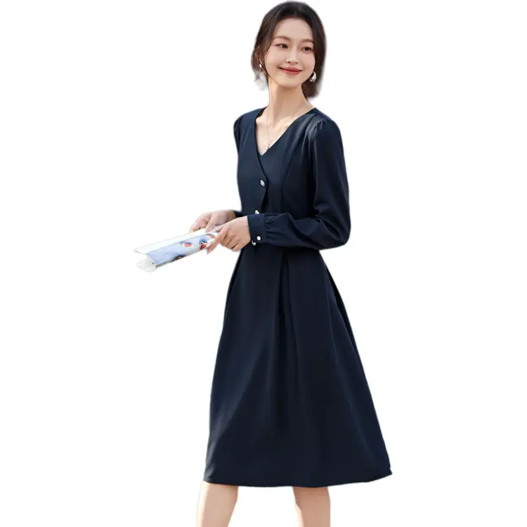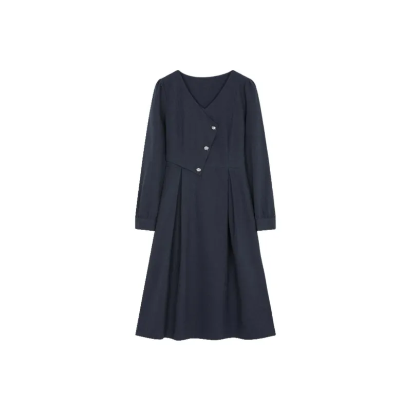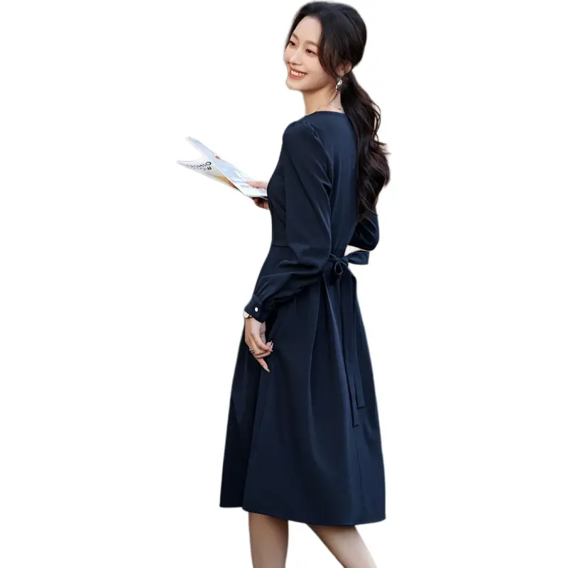 Mo Han Yi Mei Длинный рукав Платье Женское Синее