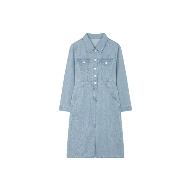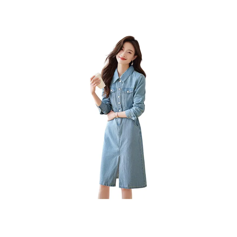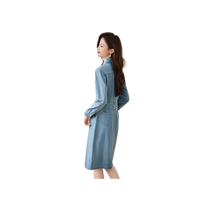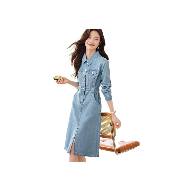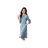 Mo Han Yi Mei Длинное платье с длинными рукавами женское джинсовый синий
